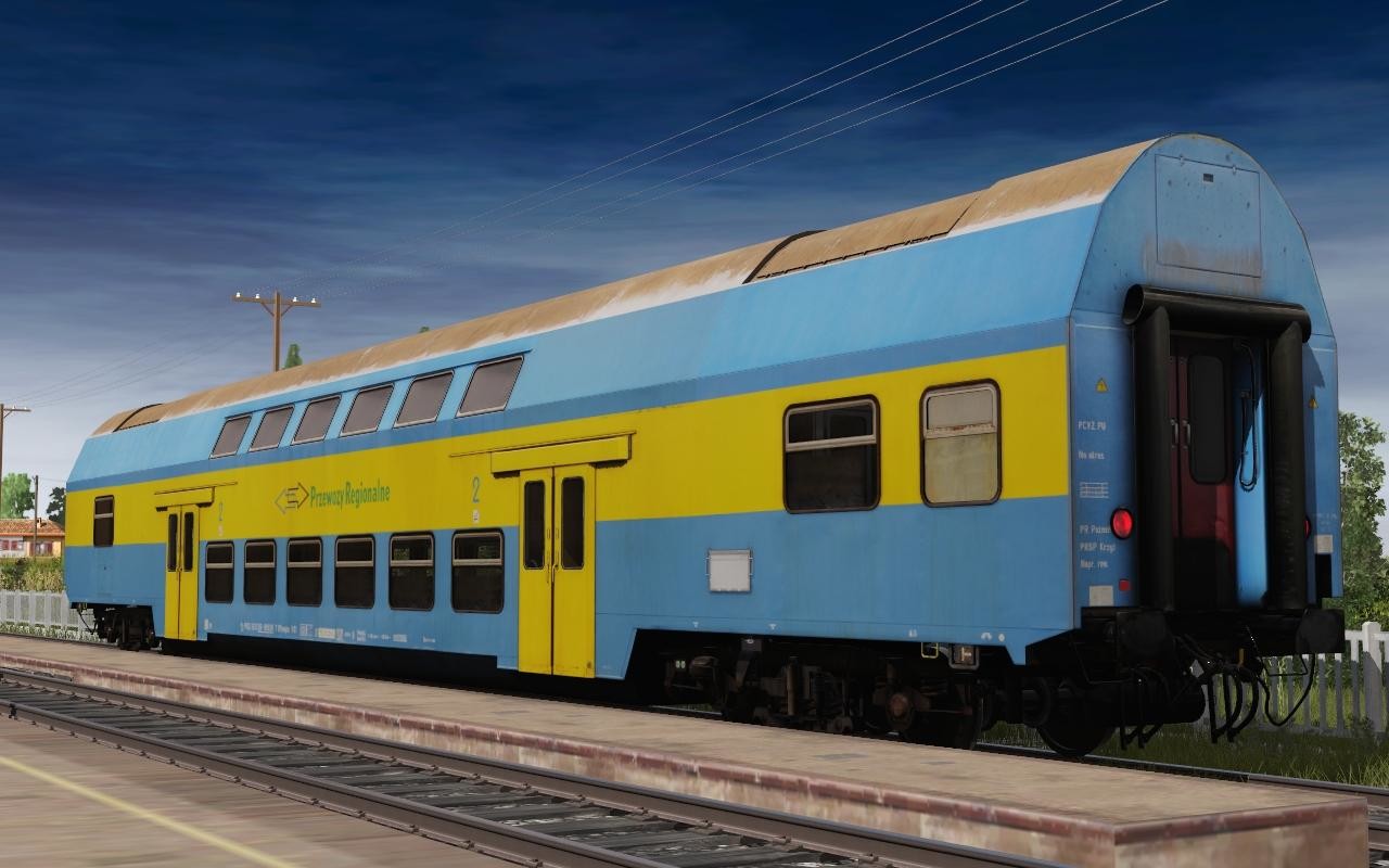 Manufactured from 1988 until 1989 at the "VEB Waggonbau Goerlitz" factory in Germany, these doubledecker cars were and still are used for regional passenger transport in Poland, although many(if not all) were modernised. They are 26,8m in length, sit on Gorlitz VI bogeys with disk brakes, have a top speed of 120km/h and are present in other countries also, such as Romania, Czech Republic and Germany. Pack includes: *1 classic doubledecker car with photorealistic textures *Full PBR...Manufactured from 1988 until 1989 at the "VEB Waggonbau Goerlitz" factory in Germany, these doubledecker cars were and still are used for regional passenger transport in Poland, although many(if not all) were modernised. They are 26,8m in length, sit on Gorlitz VI bogeys with disk brakes, have a top speed of 120km/h and are present in other countries also, such as Romania, Czech Republic and Germany. Pack includes: *1 classic doubledecker car with photorealistic textures *Full PBR textures *3 different kinds of train-end signs *Brakeshoe option (does not affect the braking sequence, only for visual effect) *Animated couplers & air hoses and sounds *3 levels of buffer contact sounds *Up to 6 levels of LOD *Doors that open/close via Properties tab or when loading/unloading passengers plus sounds *Disable Physics option *Custom bogeysounds *Custom realistic full interior(lower deck, middle and upper deck) *Interior & exterior nightmode *Editable destination boards with text fields for departure station, destination station, via station Далее