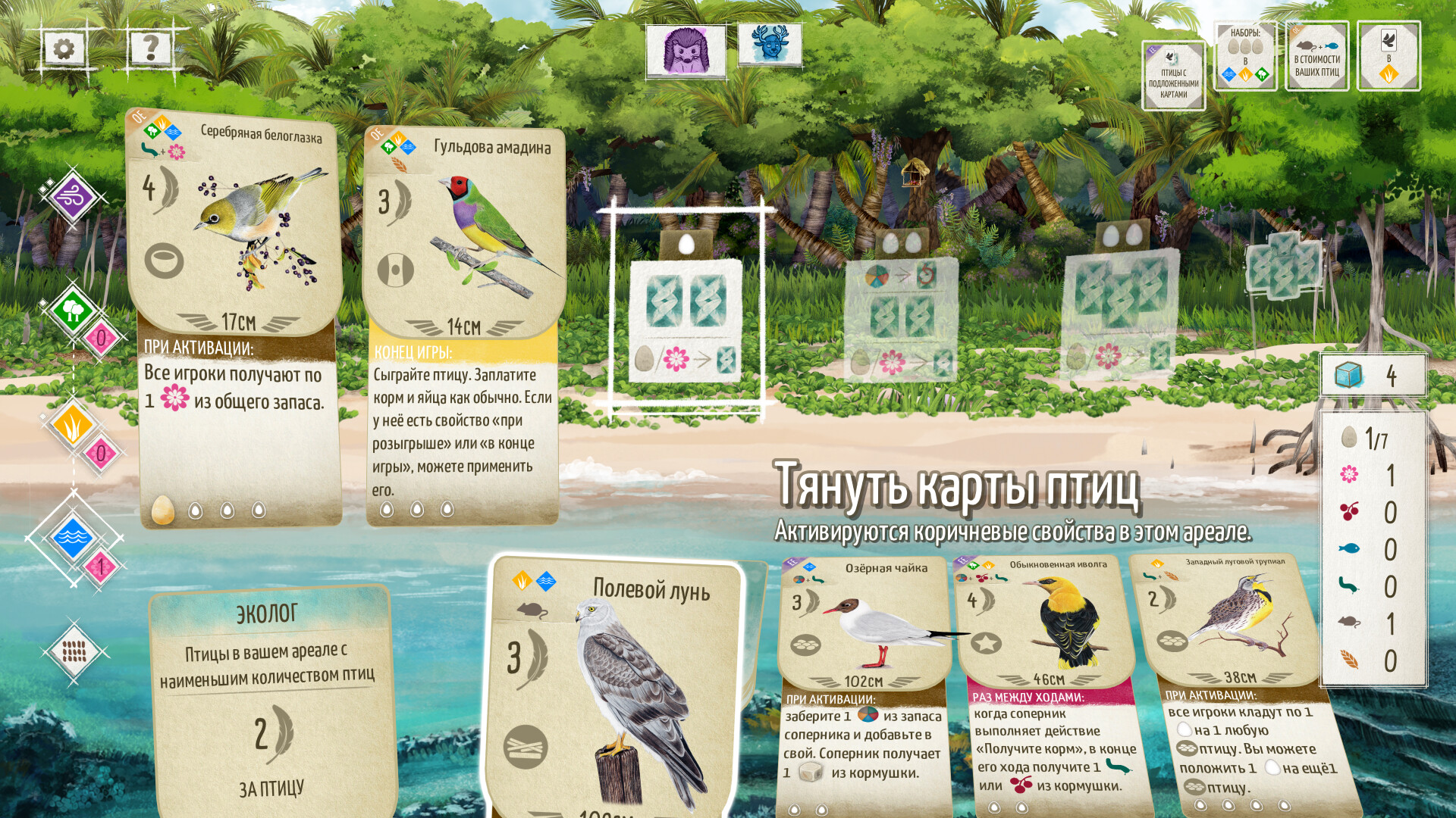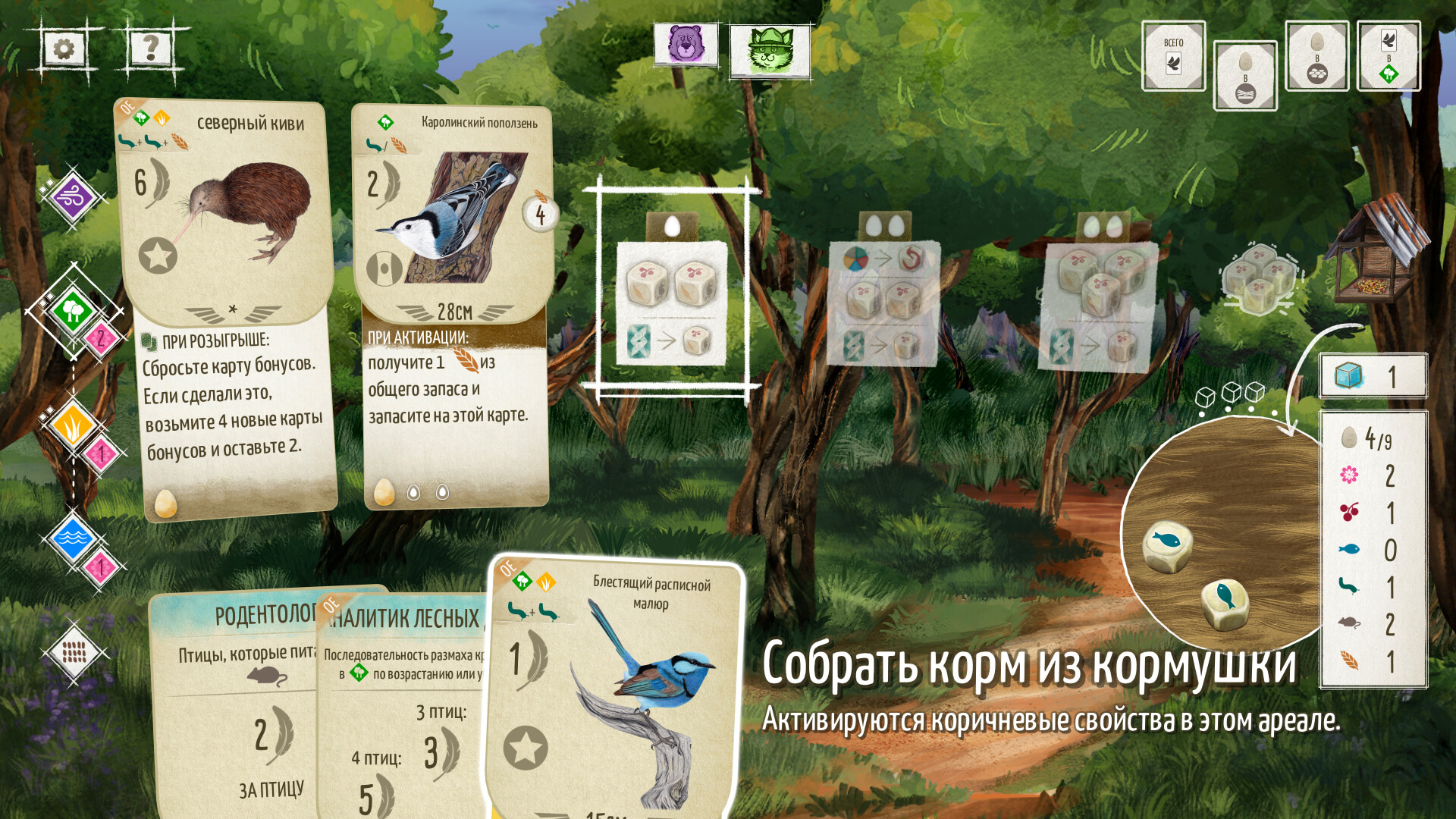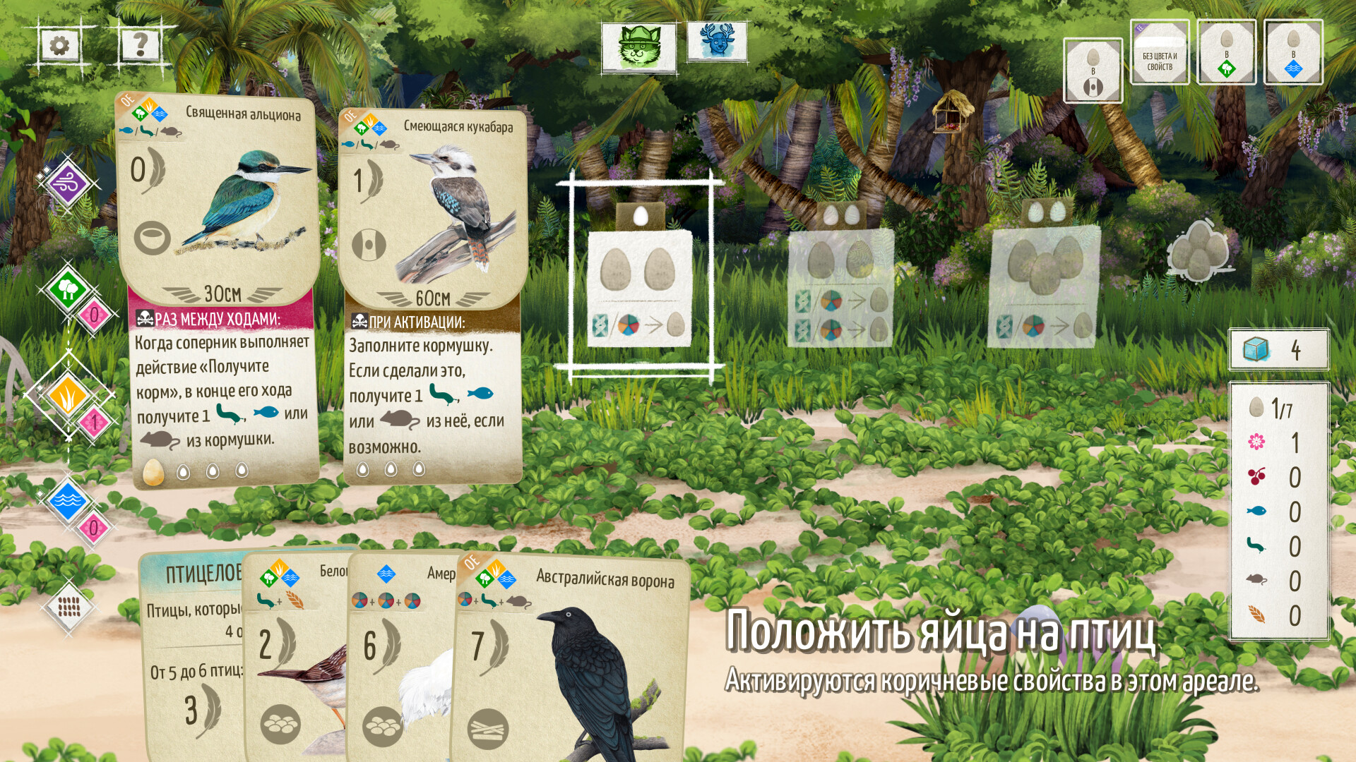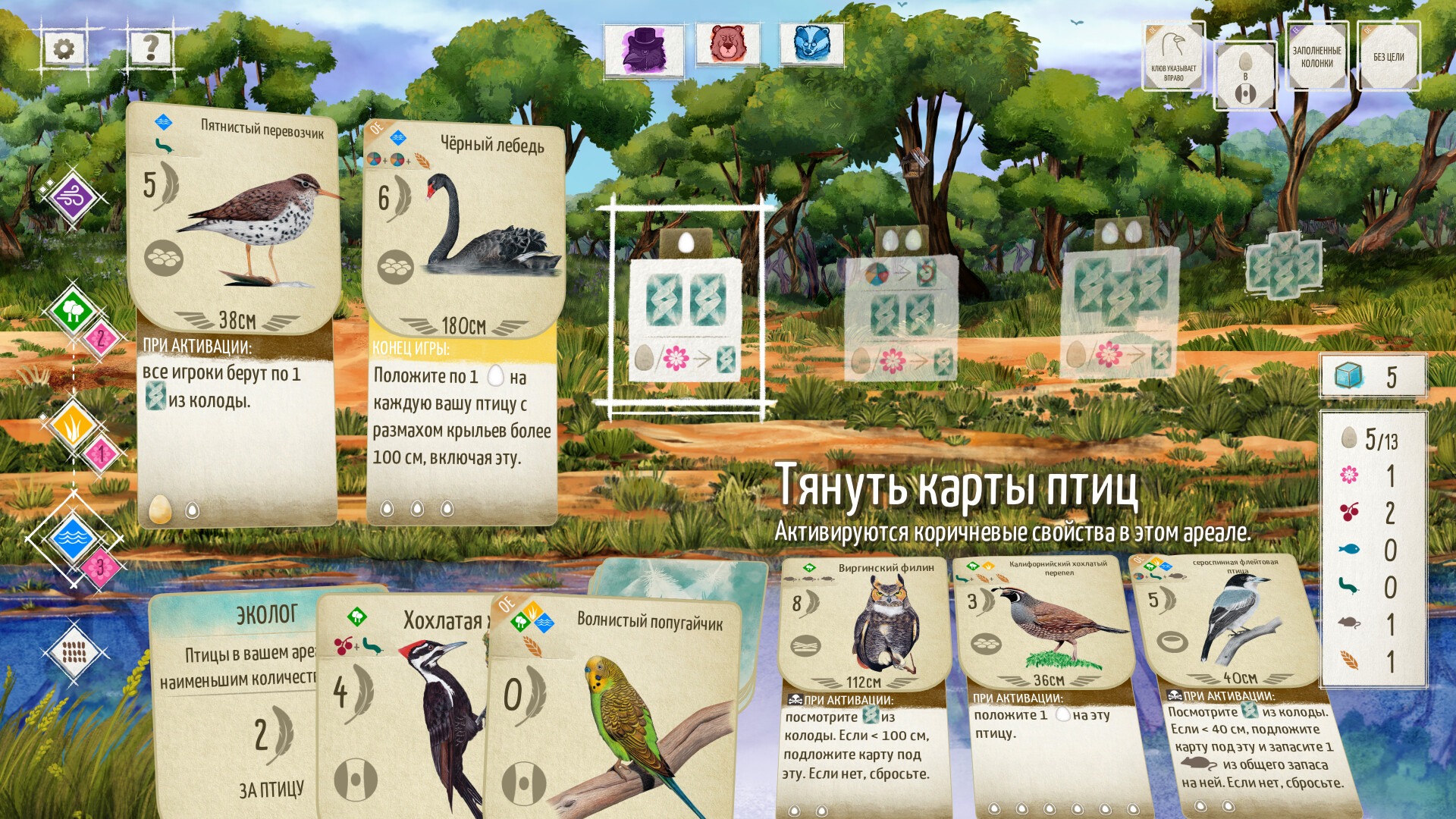 Отправляйтесь в приключение по завораживающим просторам Океании в отмеченной наградами адаптации дополнения «Океания» для Wingspan (Крылья). Познакомьтесь с птицами Австралии и Новой Зеландии, собирайте новые ресурсы и попробуйте новые механики, с которыми создавать заповедники станет еще интереснее.Пополните заповедник сотней новых птиц.Во втором дополнении к Wingspan (Крылья) вас ждут птицы из Океании. Познакомьтесь с ними поближе благодаря интересным фактам на их картах и записям их звуков. Многие из этих птиц наделены новыми способностями, включая желтое свойство, которое срабатывает после окончания игры.Порадуйте птиц новым лакомством — нектаромВиртуальная версия игры стала еще слаще, ведь у вас появился новый тип корма — нектар. Это одна из основ здорового рациона птиц Океании и отличная замена корму для птиц из других ареалов. Новые испытанияПомимо новых свойств птиц в дополнении «Океания» вас ждут новые бонусные карты и задачи раунда. Теперь вам придется уделять еще больше внимания деталям, следить не только за самими птицами, их гнездами и размахом крыльев, но и за тем, куда направлен их клюв на карте. Кроме того, у некоторых раундов может и вовсе не быть никакой задачи. Все эти испытания и нововведения сделают каждый новый раунд уникальным.Новый альтернативный интерфейсС обновленным дизайном интерфейса у вас не только появится место для нектара, но и возможность перезагружать кормушку и лоток карт. Кроме того, вы сможете быстрее собирать корм и карты, получая при этом меньше яиц, что сделает игру еще разнообразнее и динамичнее.Еще больше расслабляющих мелодийВ этом дополнении вы сможете насладиться новой музыкой от Павла Горняка. Ощутите всю красоту дикой природы с этим чарующим саундтреком.Новые тематические фоны и портретыВдохновившись красотой и природным разнообразием Океании, мы создали новые фоны и портреты, которые перенесут вас в это удивительное место. Выбирайте понравившееся визуальное оформление и прикоснитесь к природе континента.Все особенности базовой версии игрыВместе с дополнением «Океания» вам будут доступны все особенности базовой версии игры Wingspan (Крылья) независимо от того, есть ли у вас также дополнение «Птицы Европы». Играйте с друзьями в кроссплатформенный мультиплеер, проходите еженедельные испытания и играйте против Авто — теперь с новыми бонусными картами и задачами раунда. Далее