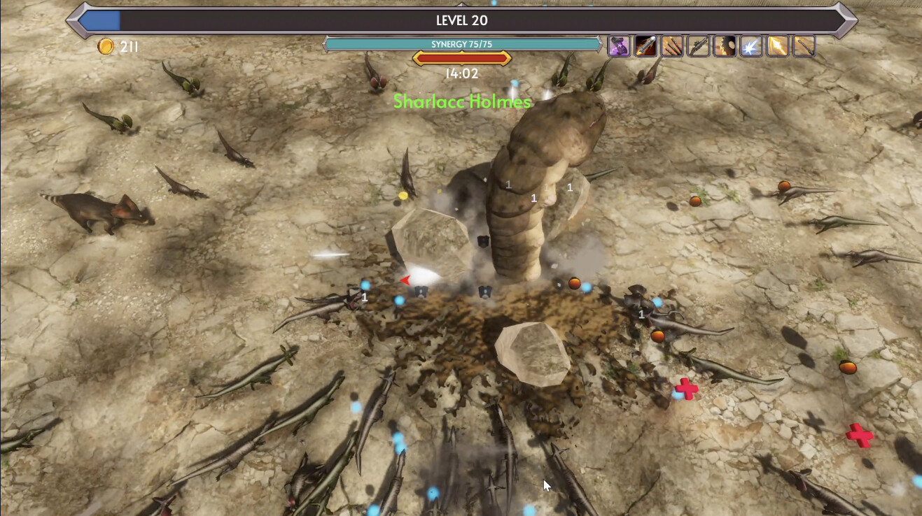 Dinosaurs and dragons have returned to earth to reclaim their throne. Battle the reptilian ancients from the past in this action roguelike shooter. Topple the most fearsome creatures to roam Earth and battle against the legends of Earth's fantasy mythology.Features. 10 Weapon Drones50 Battle Skills6 different elements and combos10 unique and upgradeable super weaponsUnique quick customizable 20 minute runs