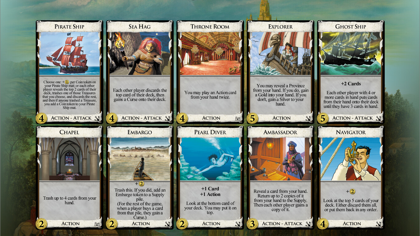 This 1st Edition pack requires owning the corresponding expansion to play. The 8 cards removed from Seaside when it went to its 2nd edition. These were removed for a reason! But if you want them anyway, here they are.Included Cards. NavigatorPirate ShipSea HagExplorerGhost ShipEmbargoPearl DiverAmbassador