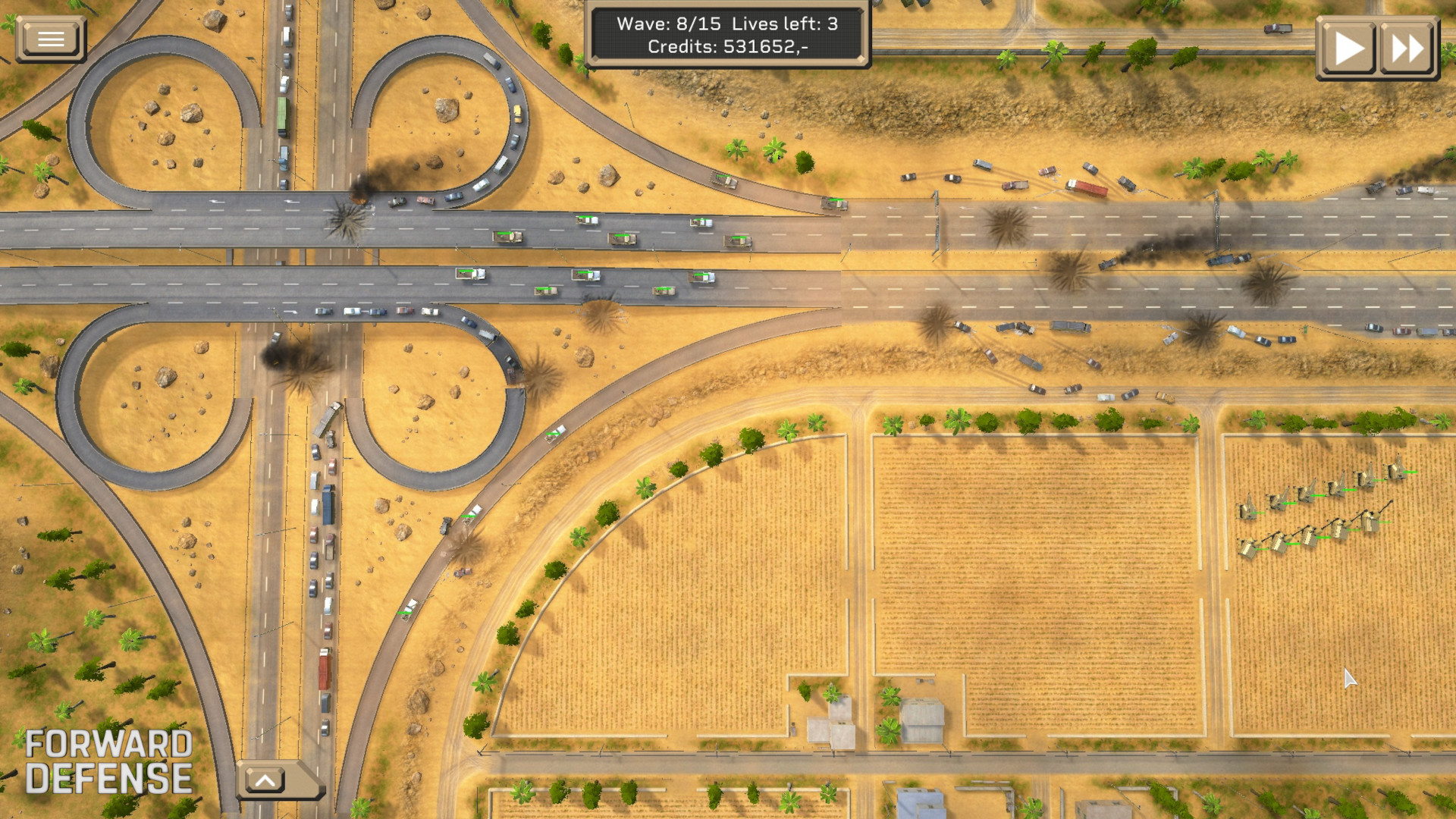Join the United Coalition Force and defeat insurgent forces attempting to overrun and destroy your defenses. Build and repair a wide array of Turret Structures ranging from high velocity Smoothbore Cannons to Howitzers firing 155mm air burst shells. Use Hesco Walls to provide perimeter protection. Forward Defense combines turn-based gameplay with the look and feel of classic military style RTS games.Balanced Unit & Turret Design. Choose from six different Turret designs and learn which ones work best in different situations. Rotary Cannons will work well against lightly armored targets, while Missile Launchers will be your best bet against long range hostiles. An easy to read Information Window will show you the stats you're looking for.Unique & Detailed Maps. Visit uniquely detailed locations across a vast Middle Eastern country. Hold the line at a sabotaged oil refinery, defeat enemy forces in a war-torn destroyed city and defend fertile farmland near a mountainous village. Each level has a completely different layout so you have to take the environment into account when considering Turret placement. The Backstory. "On June 6 2028, the United Coalition Force invaded the sovereign state of Kardastan. After a brutal three year war, the UCF succeeded in hunting down and assassinating the Kardastani dictator Haddar Sharif. The war sparked civil unrest and led to the rise of the Revolutionary Freedom Army, an insurgent faction who wishes to avenge Haddar Sharif."Community-Driven Development. We're very open to community feedback and are expanding the game with new features, mechanics and units while keeping a close eye on performance. If you have any ideas or run into any issues, feel free to let us know!Full Ultrawide Support. Forward Defense is optimized to work at both 16:9 as well as ultrawide resolutions. Далее