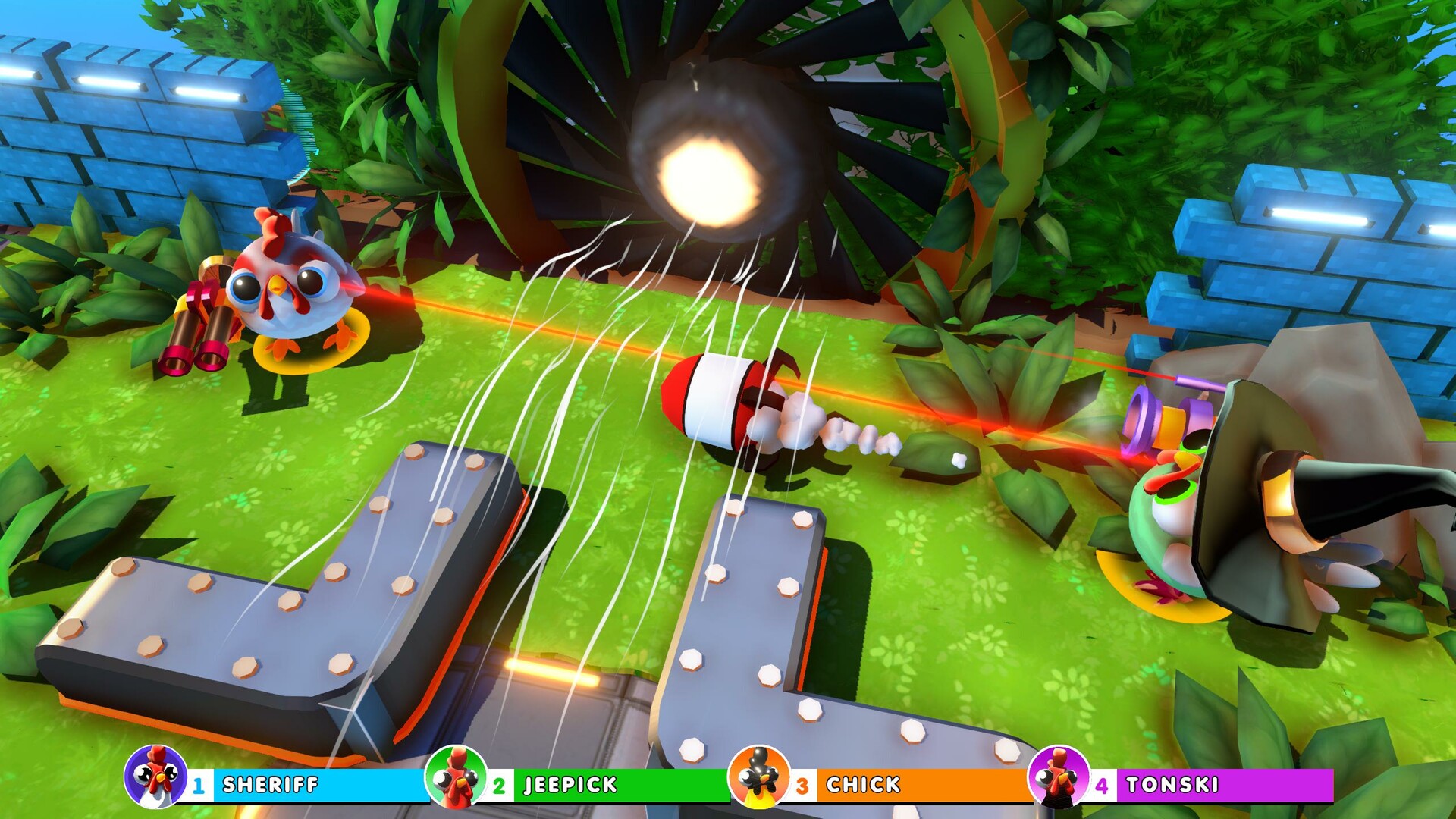 ►БОЛЬШИЕ РАЗБОРКИ МАЛЕНЬКИХ ПТИЧЕК◄. Устраивай десятиминутные поединки с другими игроками. Идеально для веселой вечеринки с друзьями или эпичной битвы с противниками со всего мира. На скамейке запасных всегда есть продвинутый ИИ►НЕ ВСЕ МУТАЦИИ ВРЕДНЫ◄. Отведай секретную формулу ДНК и мутируй в бешеного качка-переростка. Раскидывай других куриц, используй ультимативную способность для массовой атаки, круши всё вокруг, почувствуй каково это быть огромным монстром►НЕ ВЫЖИДАЙ - СРАЗУ ПЛИ◄. Используй весь доступный арсенал нелетального оружия - от водяного пистолета до рогатки, метающей куриные яйца. Просто подними пушку и стреляй в других куриц!Оглушай молотом, бей боксерской перчаткой , перемещайся с помощью карманного телепорта - вот неполный список специальных приёмов доступных в игре. Застань оппонента врасплох и сам не попадись на уловки►СДЕЛАЙ ПЕРЕРЫВ ОТ ПЕРЕСТРЕЛОК◄. Сражайся не только в стандартных боях, но и в раундах по специальным правилам. Зарабатывай победные очки в дополнительных состязаниях, где точность стрельбы не главное►НАЙДИ СВОЮ УНИКАЛЬНОСТЬ◄. Выбирай среди более чем пятнадцати куриных образов: панк, самурай, ведьма и мало ли кто ещё. Победи противников даже курицей ученым Далее