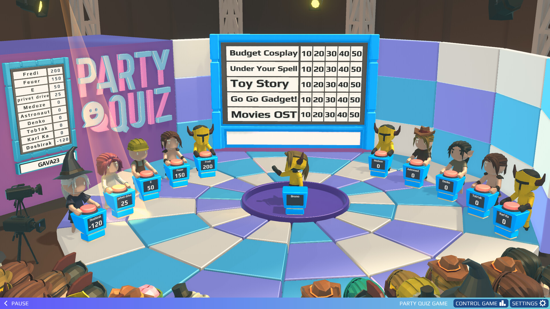 Примечание: это игра с многопользовательским режимом в одной комнате; только ведущему нужно иметь экземпляр игры, чтобы вся группа могла играть.Party Quiz – это новое прочтение викторин для эрудитов на TV, но для друзей и в домашней компании. Если вы всегда мечтали попробовать себя в роли знатока всего на свете, то такая возможность наконец появилась! Играйте и наслаждайтесь процессом с друзьями, уютно расположившись на диване в обнимку с пиццей. Нет возможности собраться вместе? Не беда! Вы всегда можете сыграть онлайн и получить от этого не меньше удовольствия, да и пиццы вам достанется больше. Для игры необходимо минимум 3 игрока, один из которых становится ведущим, а участники - игроками. Перед началом игры ведущий создает во встроенном конструкторе Party Quiz Constructor пак вопросов по различным тематикам. Нет времени этим заниматься? Используйте Steam Workshop, чтобы начать игру с паком от сообщества игры, отфильтровав их по различным уровням сложности иили включенным темам. Итак, вопросы готовы, ведущий занял своё место у стойки и по очереди представил игроков. Битва за звание самого умного обладателя быстрых ручек начинается! Зарабатывайте очки правильными ответами и продвигайтесь к вершине турнирной таблицы. Проверьте свою эрудицию и удивите соперников, быстрее всех отвечая на самые разные и иногда непредсказуемые вопросы. - Party Quiz позволит вам провести отличный вечер в компании семьи и друзей;- Каждый может примерить на себя как роль игрока, так и ведущего, выбрав среди доступных персонажей наиболее привлекательного для вас;- Обменивайтесь паками вопросов с другими игроками через Steam Workshop;- Проверьте свои силы во всех областях знаний. Далее