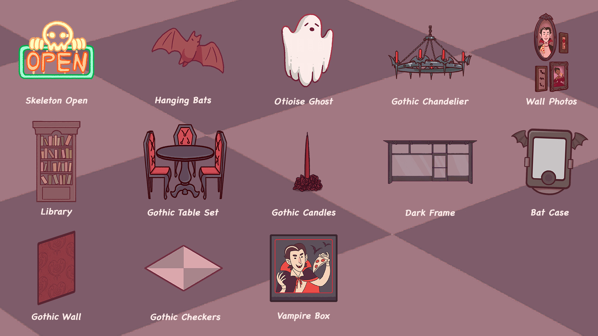 Don't want to grind? Get all Halloween 2019 shop decorations for a slight bargain with this DLC! Included Items: - Skeleton Open (Animated) - Hanging Bats - Otiose Ghost - Gothic Chandelier - Wall Photos - Library - Gothic Table Set - Gothic Candles - Dark Frame - Bat Case - Gothic Wall - Gothic Checkers - Vampire Box **PLEASE NOTE: If you already own any item from the list, purchasing this DLC will not provide you an extra set/ duplicate nor be discounted off of the final price. You will only receive the items you have yet to obtain. Далее