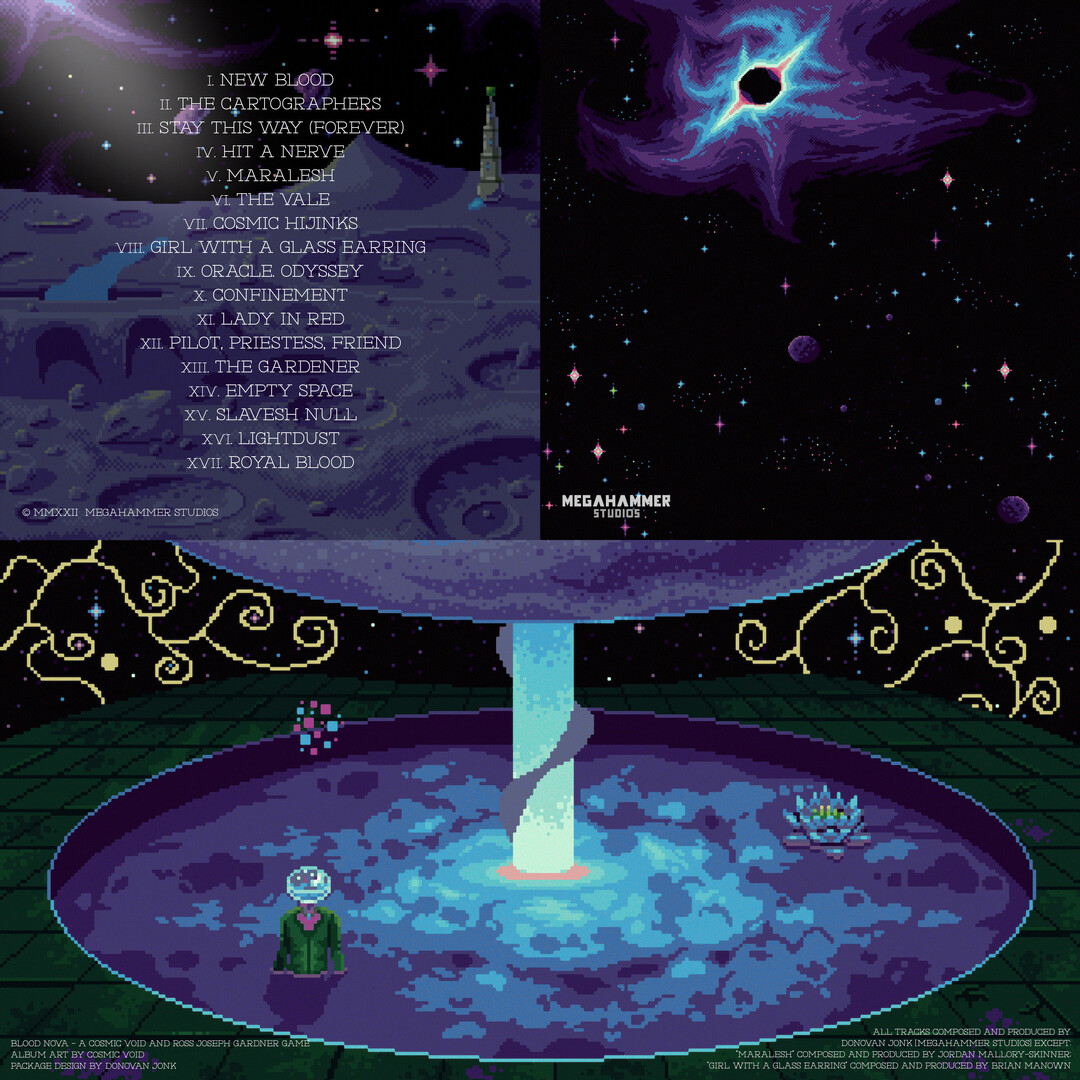 Music from the game Blood Nova composed and produced by Donovan Jonk.Experience all the drama, intrigue, adventure, and mystery from Blood Nova in this complete, definitive soundtrack album featuring all compositions and soundscapes from the game, remixed and arranged by Megahammer Studios.This album has been sequenced to tell the story of Princess Love and Kel Yakkavan in a chronologically faithful fashion so you can relive the adventure of Blood Nova with every listen. Put on your headphones, settle in, and explore The Looping Vale with this adventurous score!Blood Nova: Princess Love is set to assume the throne of a powerful galactic empire. But when conspirators try to thwart her ascension, Love and her best friend Kel become stranded on an interstellar lighthouse. Prove Love worthy of rule in this thrilling point and click adventure game. Далее