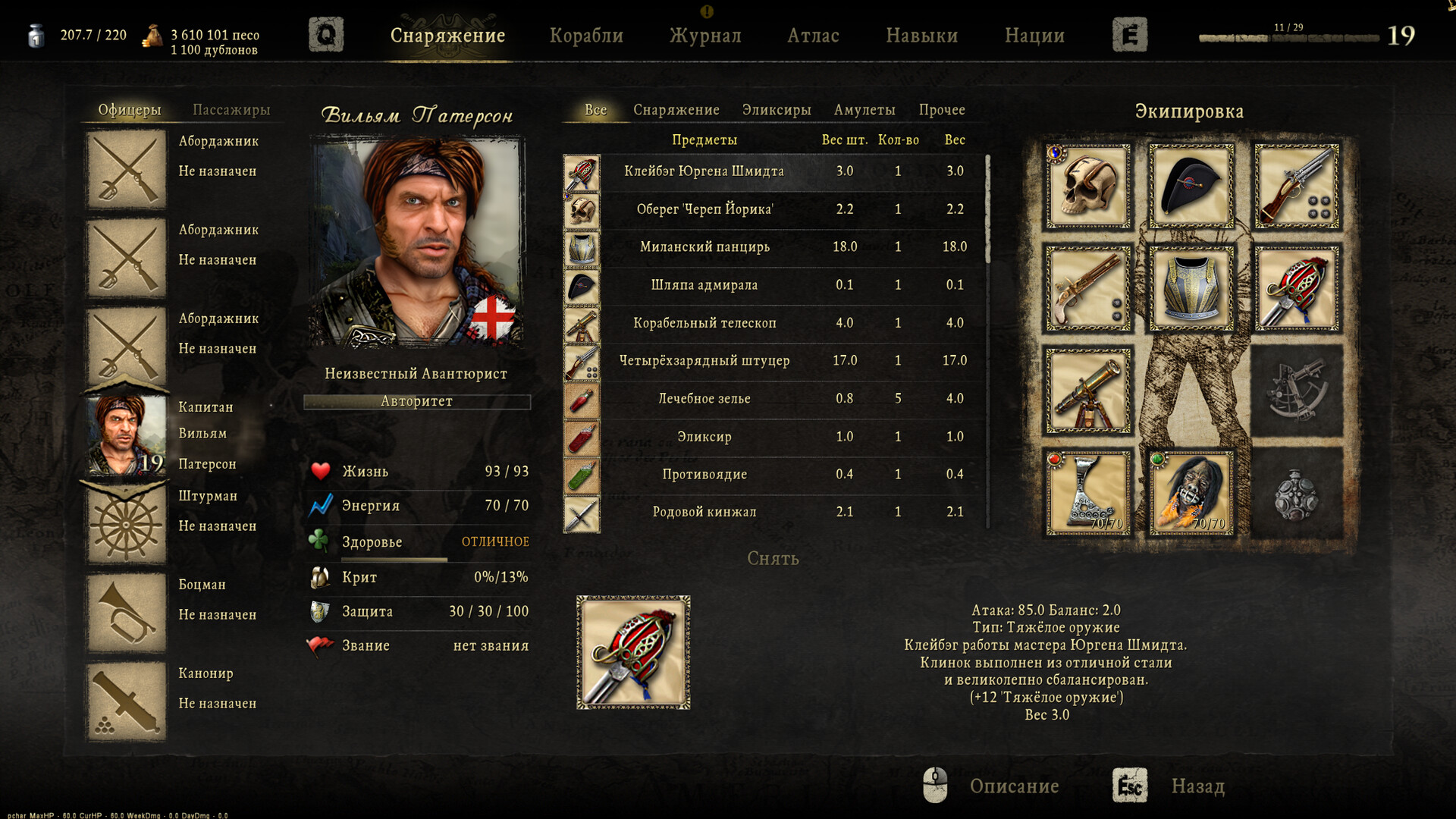Добро пожаловать на Карибы 17-ого века! Вы - Шарль де Мор, акула светской жизни и художник-любитель. Точнее, вы им были до прибытия в Новый Свет. Здесь у вас нет ни гроша, висит долг на миллион, а ваш брат, даже находясь в тюрьме, откровенно насмехается над вами.. и вот, кто-то уже тычет вам в лицо пистолет прямо сейчас. Всего через 10 игровых лет вы станете самым опасным и важным человеком в регионе. К тому же страшно богатым и знаменитым, а вот женатым-ли или холостым, хорошим или плохим, живым или мёртвым - решать уже вам. Новый Свет это место, где исполняются мечты, а волевой человек может заполучить самое главное пиратское сокровище - настоящую свободу.Удачи, капитан де Мор. Приключение длиною в жизнь или в 200 часов.Сотни квестов и событий.Взрывоопасная смесь из историчности и мистики.Романы, друзья, сопартийцы и заклятые враги.Достойная оплата и карьерный рост: от генерал-губернатора до пиратского барона.Карибское море - не просто далекий и загадочный регион. Это ваша песочница и в неё нельзя не влюбиться. От вершин пирамид до морского дна вас ждут сокровища, опасности, квесты и незабываемые встречи. Меняйте этот мир, изучайте его тайны, знакомьтесь с его обитателями. Подчините Новый Свет себе или он вас уничтожит. Десятки островов, поселений и огромный материк.Прочувствуйте красоту архипелага благодаря динамической погоде и роскошному морю.Исследуйте пещеры, пирамиды, джунгли, индейские стоянки и затерянные города.Посетите таверны, бордели, верфи, церкви, форты и другие точки интереса.Охотьтесь за сокровищами, играйте в азартные игры, пейте, отдыхайте и участвуйте в дуэлях.Владеть военным кораблем - привилегия, статус и роскошь. Вы один из очень немногих людей, кто может себе такое позволить. Вы начнете свое путешествие на скромном шлюпе с алкоголиком штурманом, а закончите на 100-пушечном монстре с лучшими офицерами. Соберите флот, чтобы разграбить пару городов, а потом пересаживайтесь на быстрый фрегат и просто наслаждайтесь красотой удивительно голубого моря, спокойствием волн и жаждой исследования. Пока не попадете в шторм.Десятки кораблей - цвет и слава Эпохи Парусников!Покраска, ремонт, апгрейды - кастомизируйте свой корабль.Проверьте себя в безжалостных, но фановых морских сражениях.Участвуйте в свирепых абордажах: начинайте с верхней палубы и прорубайте дорогу до капитанской каюты.Соберите коллекцию уникальных кораблей.Делите добычу с командой, следите за моралью и подавляйте бунты.Соберите звездную команду морских офицеров.Капитан наиболее уязвим на суше. В море помирать веселей, хотя бы потому, что не в одиночку - ваша команда будет сражаться и стоять до конца вместе с вами. Бой же на суше это всегда вызов и чудовищный риск для вас и для тех, кого вы любите. Берите телохранителей, отравите своё оружие, возьмите шпагу потяжелее, зарядите пистолеты, изучите местность и скрафтите пару зелий. Вперёд! Вас ждет всякий сброд, бандиты, пираты, солдаты и ваши же конкуренты, которые любезно хотят вам помочь донести сундук с сокровищами!Рассчитайте билд героя под себя. На выбор: мастер тяжелого оружия, ловкий фехтовальщик, снайпер и хитрый пройдоха.Снарядите себя и своих сопартийцев. От ножей, шпаг и пистолетов, до тяжелой брони, топоров и мушкетов.Будьте всегда готовы: крафтите зелья, боеприпасы и амулеты.Ищите неприятности. Чем больше