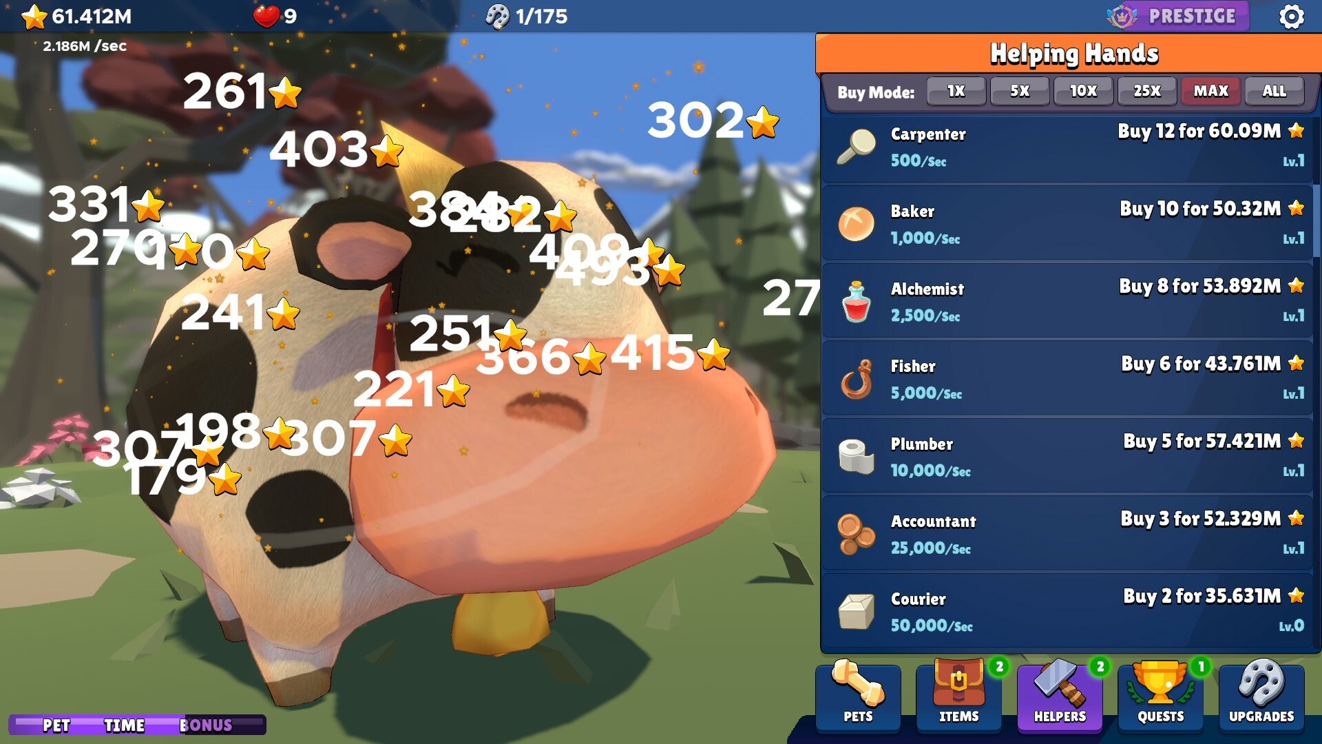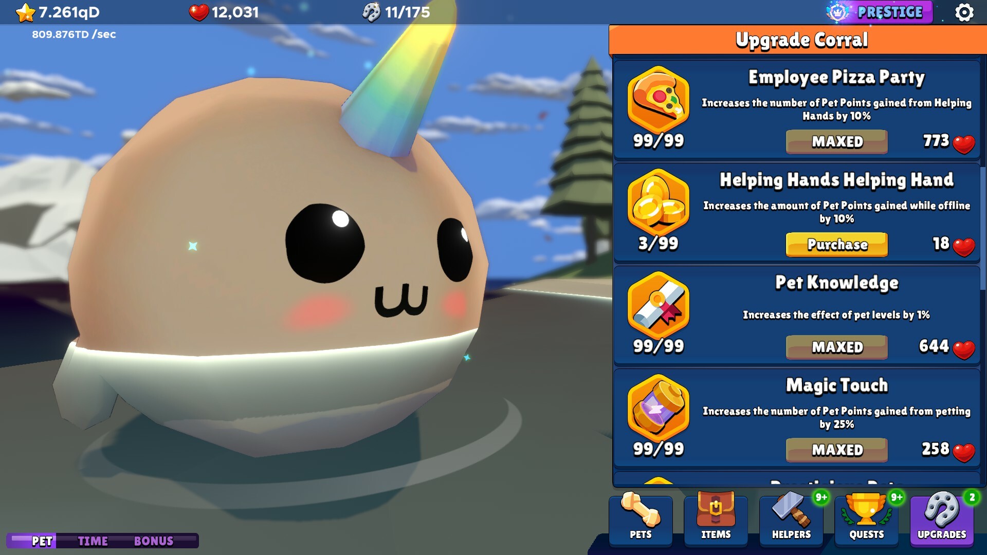Welcome to the wonderful world of Let's Pet Pets™!. This is a game where you pet pets to gain Pet Points. Pet Points can be used to purchase Helping Hands. Helping Hands will give you more Pet Points automatically every second (even while you are away). Each Helping Hand can be individually upgraded to give you even more Pet Points. You can also use Pet Points to purchase Items. Items are unlocked through reaching milestones and progressing through your Let's Pet Pets™ journey. These Items have a multitude of effects. From increasing the efficiency of manual pet petting to increasing the duration of the Pet Time Bonus. The Pet Time Bonus is a window of time which will multiply your Pet Point production across all sources. This Pet Point production multiplier will remain active for the duration of the Pet Time Bonus. As you pet pets, upgrade Helping Hands, purchase Items, and play Let's Pet Pets™ you will complete Quests. Quests will earn you Heart Points. Heart Points are a very valuable resource because they let you get new eggs from the Pet Shop. Eggs can hatch into a new pet or upgrade a pet you already have. These Eggs hold a variety of cute animals ranging from Anteaters to Zebras. Each pet has its own unlockable Items, Quests, and even its own Helping Hands. You continue to gain Pet Points from other pets you have bought even while you are petting a different pet. If you feel progress slowing down and need a boost, you can prestige. Activating prestige will reset all your Helping Hands and Items, but you will keep your Eggs, Pets, Quests, and Upgrades. As you can clearly see, petting pets is going to be quite the adventure. Далее