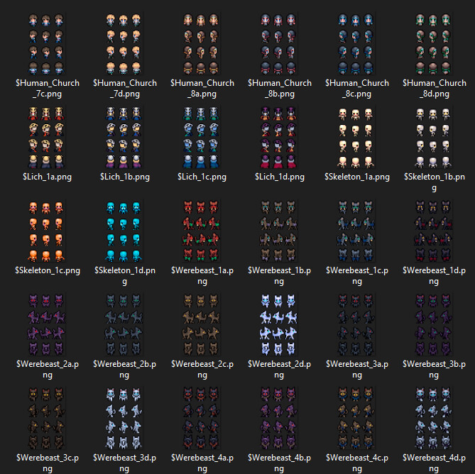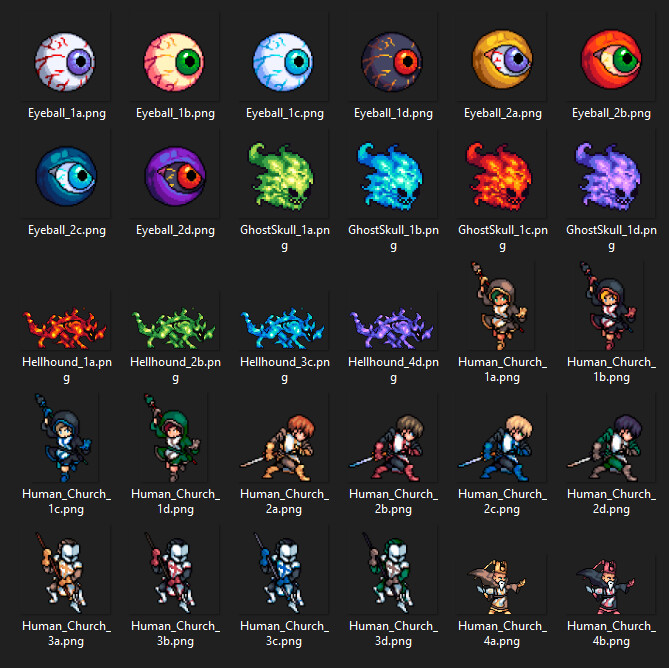 Tiny Tales is designed for those who want to create a cutesy yet epic adventure scenario for their game. In TT: Faith and Evil, you will find 18 unique and expertly crafted pixel monsters for your game! A holy Orthodoxy is out to cleanse the world of evil! But can they succeed in their noble quest before their very own followers succumb to the influence of darkness? Featuring a wide selection of holy soldiers and mages as well as classic creatures of darkness such as undeads, werewolves and other spiritual apparitions, this pack is sure to add an additional flair to your game! Features: - 18 unique static battler sprites based on evil creatures and holy warriors! - Pallet Swaps for increased bestiary value, which increases total monster count to 90! - Charsets of the monsters are bundled, with walking animations for map view! - Various convenient resizes (2x and 3x) to fit with different resolutions! Terms of Use: * This pack is for use in RPG Maker Series or the engine of your choice. * OK to be used in Commercial projects * Contents can be edited * OK for use in games with gore * OK for use in adult-rated games Далее