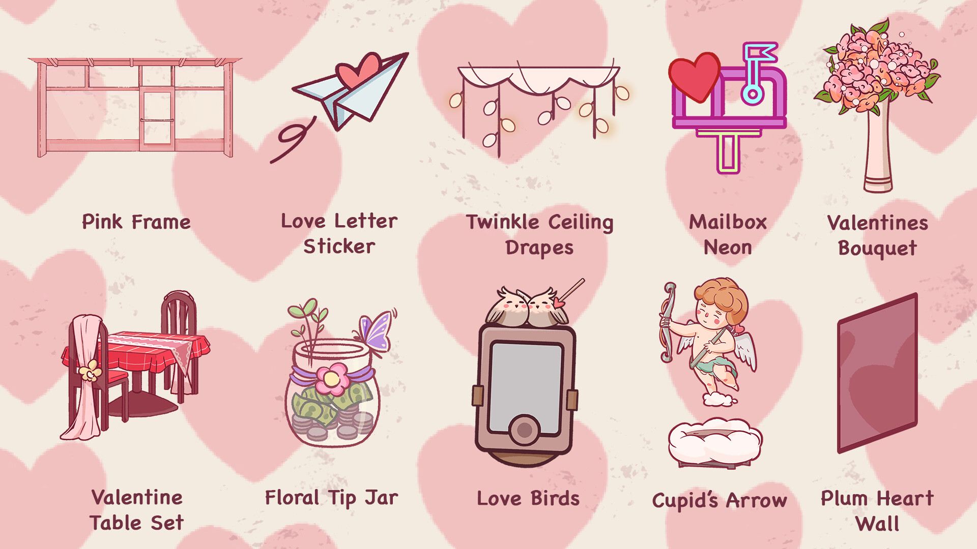 Не хотите заморачиваться? Получите все украшения по небольшой цене с этим дополнением!Включенные предметы: Розовая Рама Стикер Любовное Послание Мерцающая Драпировка Потолка Неоновый Почтовый Ящик Букет-Валентинка Столик Для Влюблённых Банка для Чаевых Цветочная Голубки Стрела Купидона Сливовое Сердце**ВНИМАНИЕ:Если у вас уже есть какой-либо предмет из списка, покупка этого дополнения не предоставит вам дополнительный набор/дубликат или скидки от окончательной стоимости. Вы получите только те предметы, которых у вас нет. Далее