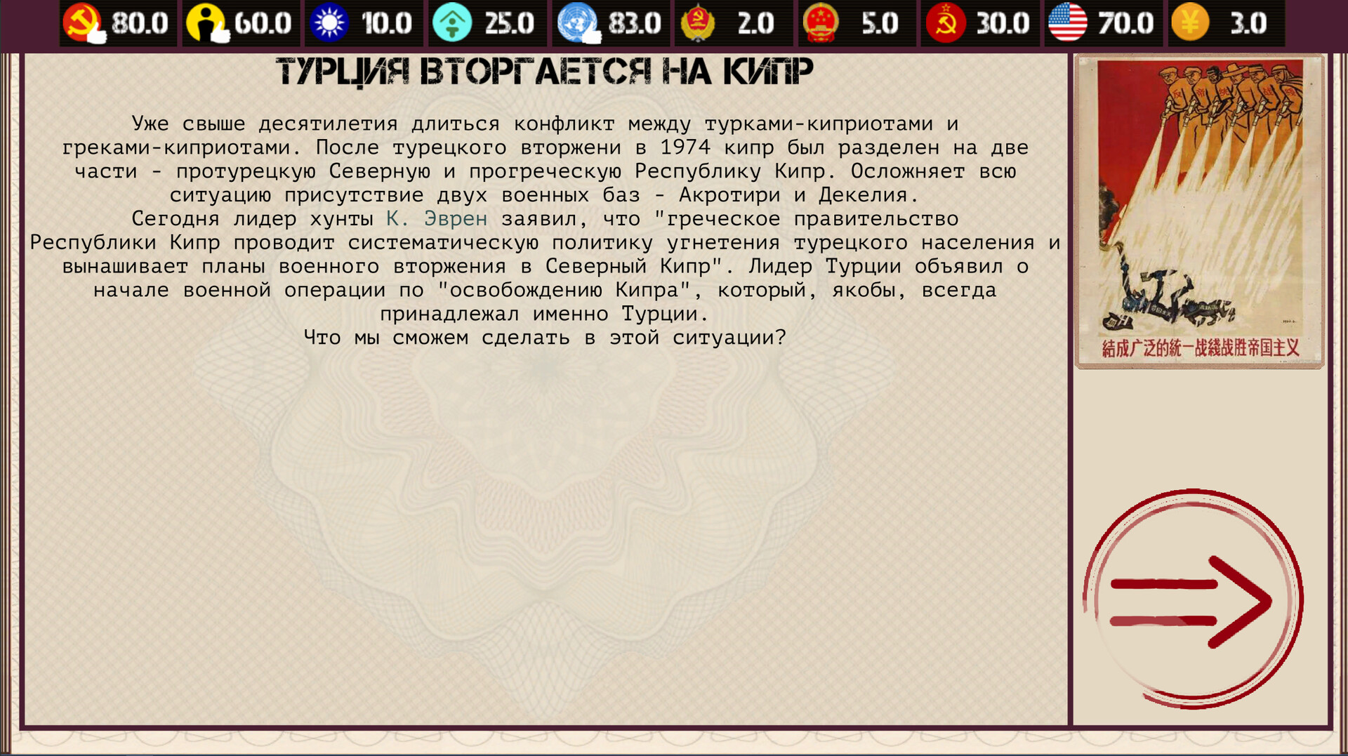 Усмирите мировых лидеров. Станьте новым мировым гегемоном: измените международный расклад, устройте масштабные войны, развалите НАТО и ОВД. Это дополнение сделает процесс внешней политики более интересным, включая: - Множество новых войн с разными интересными исходами, переписывающими мировую карту - Активная и проработанная политическая история Западной Европы - "Окончательное решение северо-американской гегемонии" - Более 150 новых событий и концовок Теперь в ваших руках вся возможность позволить Небесному Мандату вновь воцариться над всем миром! Далее