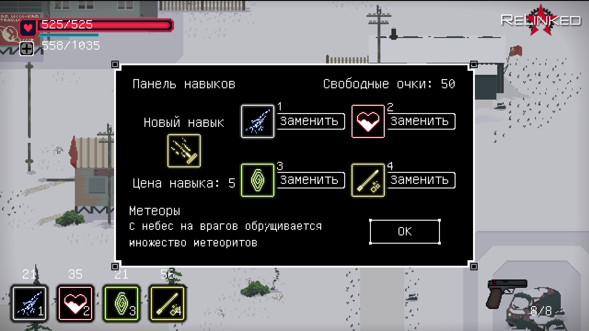 ReLinked - игра в атмосфере пиксельного sovietpunk-а альтернативной вселенной, в которой Советский Союз сделал прорыв в науке, изучая псионическую энергию. Земля подверглась вторжению внеземной цивилизации, на её защиту встали псионики - люди обладающие сверхъестественными способностями. Вам предстоит отбивать волны противников и продумывать тактику борьбы.Особенности игры:- 30 навыков;- 12 видов оружия, как ближнего так и дальнего боя;- строительство;- боссы;- и волны противников! Далее