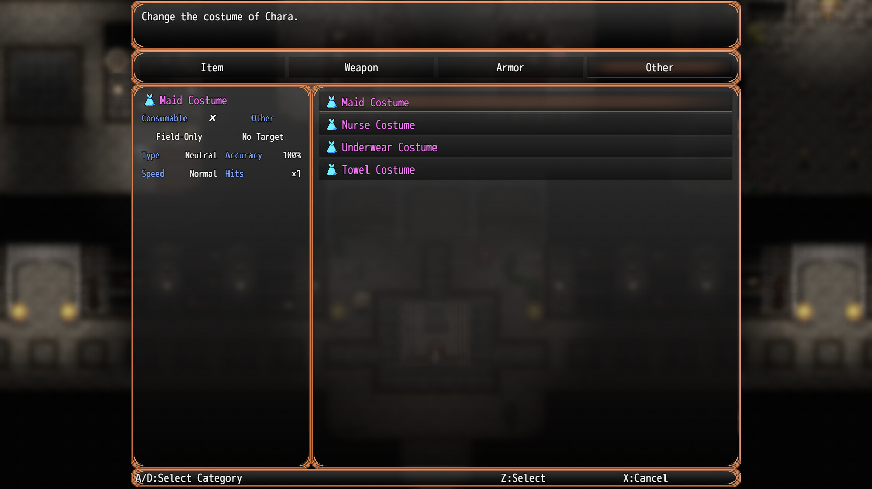 If you want to support us, please purchase this DLC!It includes 4 decorative items that do not affect the play of the game.Four types of costumes that can change the appearance of the "Chara". Maid CostumeNurse CostumeUnderwear CostumeTowel CostumeCAUTION!These items cannot be obtained in any other way in the game.