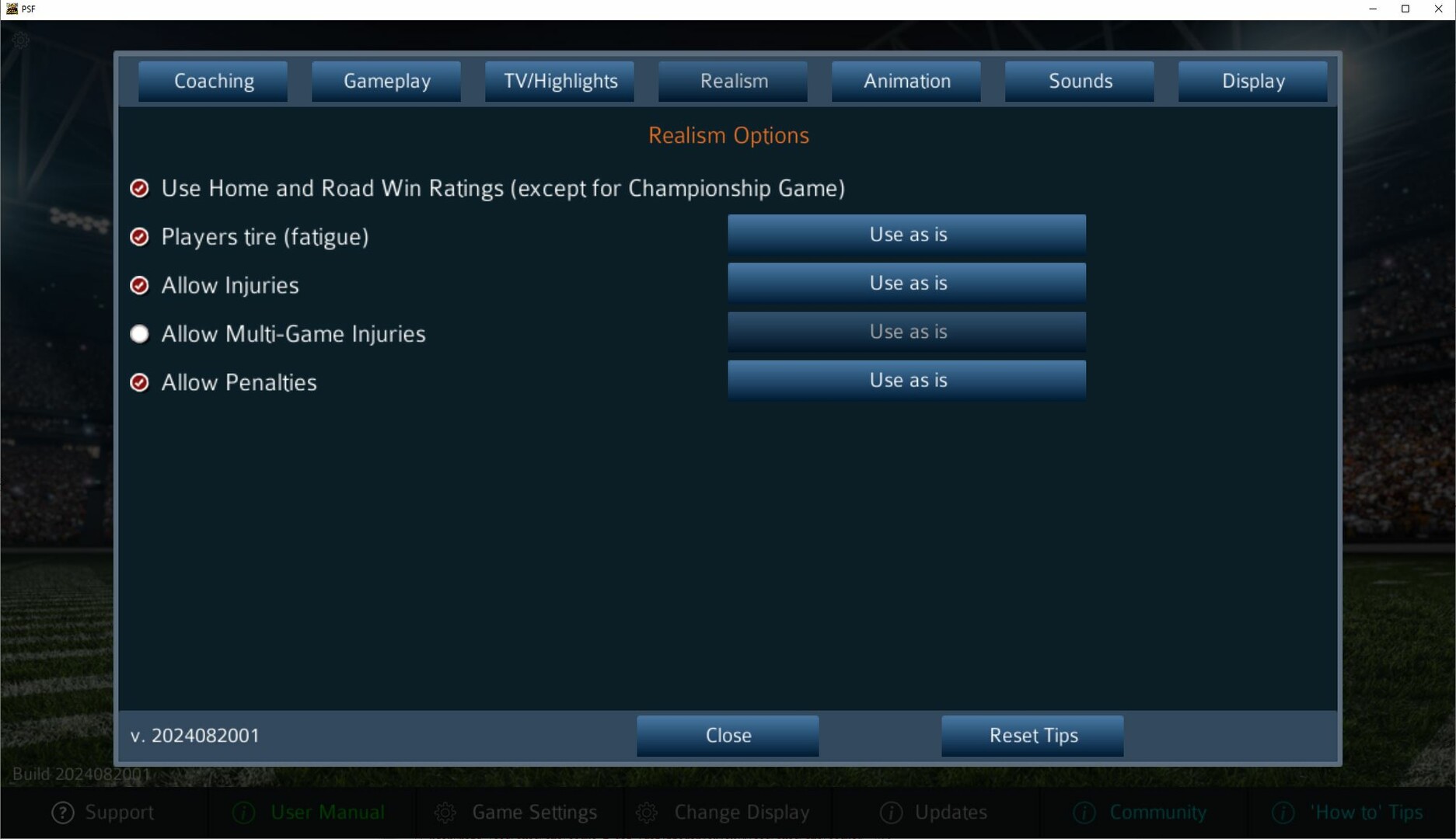 This is NOT the latest version, please check out PSF 2025 (https://store.steampowered.com/app/3013260/Pro_Strategy_Football_2025/)! From a flexible installation package to a customizable ticker to wide open career play to a greatly improved AI, you asked for it, and you got it! And remember, with Steam's Remote Play Together, you can play your friends around the world! Playing against another person raises the intensity to a whole new level! As always, the PSF goal is to put more power in your hands, and this year, that starts with the game installation. You choose where to install the game and mods! But that's not all … Career Play now supports 1 to 16 conferences, and 2 to 140 teams! You can now change the game's coaches at any time, even during the game! Easily switch between taking over either team or watching the AI play both teams, or even just let the AI finish the current possession, the current quarter, or the rest of the game! If you're watching a game, you can decide to step in and take over either team (or both!) The new studio ticker expands on last year's popular PSF Studio and now provides updates around the league! And you can customize it however you want – change the background and text colors, change the possession marker, decide which games to include, even decide how often you want it to update! A big request has been most flexibility in tweaking the injuries and fatigue, and you can now do this! Raise or lower fatigue or injuries (or turn them off completely), and even turn off multi-game injuries if you want to limit injuries to only the current game! No more losing veterans when they are cut! They're now placed in a waiver pool and can be drafted in a later draft or even a future year! To enhance this, career play now has two separate roster adjustments and a new Waiver Draft! Also, viewing the different drafts (Rookies, Free Agents, and Waivers) is streamlined this year! You can easily switch between each pools so you can see what players are available in all the pools! Live Sims now let you pause on any screen, rather than just the animation! New stats have been added, too – track rushes, passes, and catches of 20+ and 40+ yards, and you can now track how many fourth downs a team tried to convert in a season! Single Season play now lets you export all active players, with positions and OVR (will be added to career soon!) The editor has improved this year as well, with a new three-quarter length option, easier Team screen, and improved generated player uniforms (animation images)! Modders have created many image sets with all sleeves options! Continuing with improving the user experience, you can now easily search and filter when trying to locate a league or a player, great for editing leagues or viewing player history! Expanded rules now has more options and MANY more historic sets! And more overtime options! And most importantly of all, the AI has been greatly improved this year, whether it's choosing draft picks, calling plays, or managing the clock! Of course, I have never, and never will, have a cheating AI! If the AI is tough to beat, that's a testament to all the users who sent me their detailed suggestions with play by play examples, and to hours of work and testing to get the AI better and better! Далее