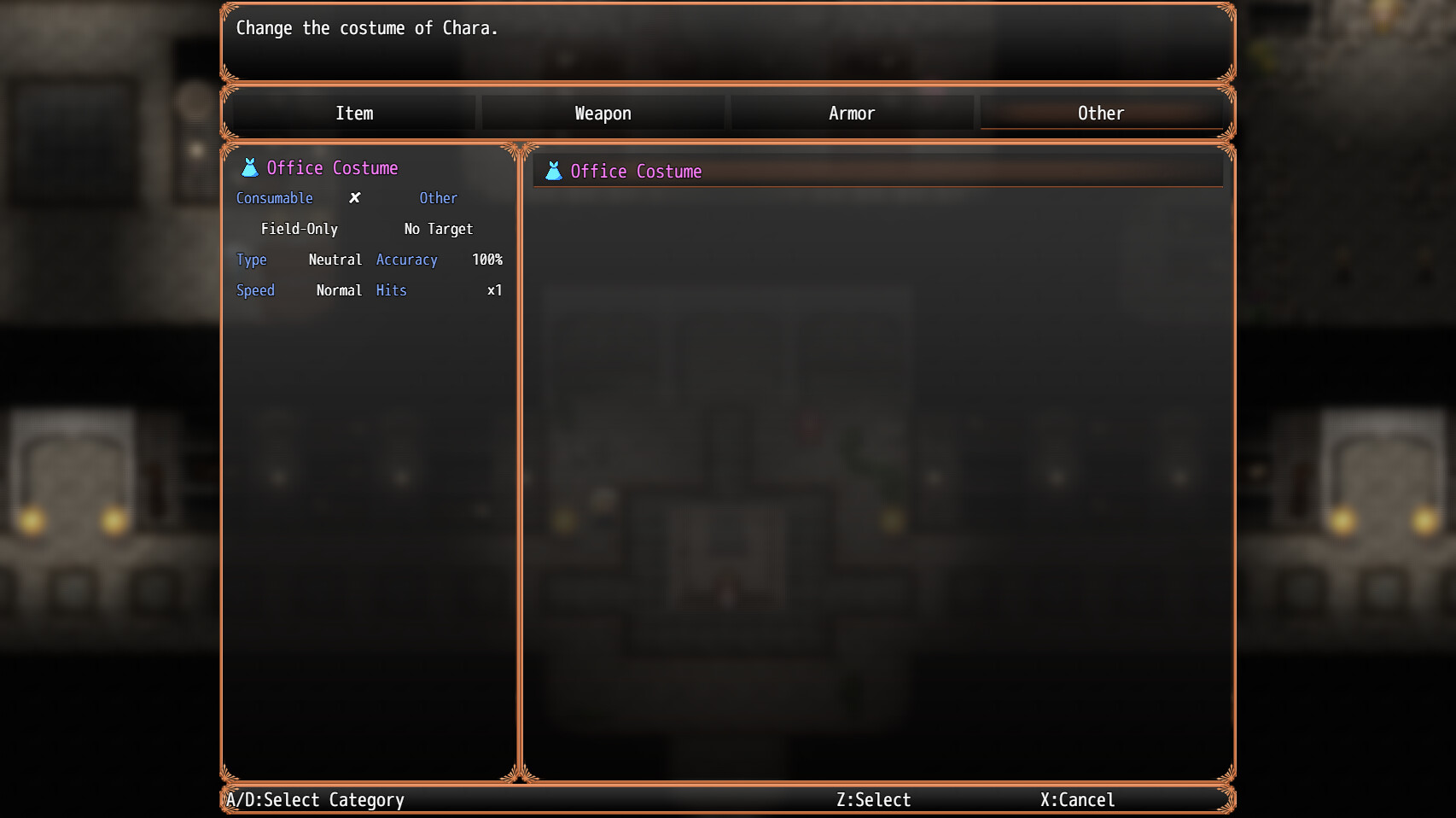 If you want to support us, please purchase this DLC!It includes special exclusive costume and several items to help you play the game.Weapon Reinforcement Items. Red Bead x12Blue Bead x8Gold Bead x6Special costume that can change the appearance of the "Chara". Office CostumeCAUTION!This costume item cannot be obtained in any other way in the game.