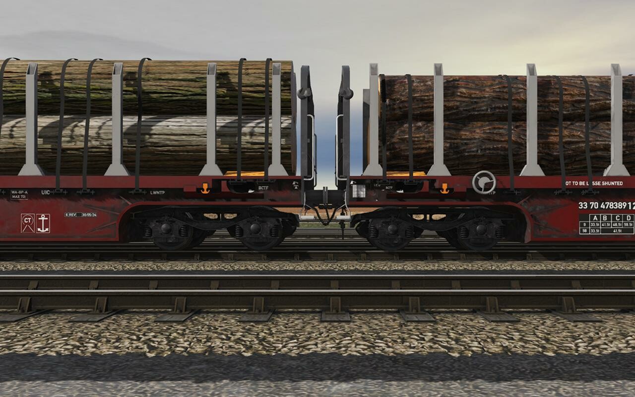 With the almost 23-metre-long KSA trolley of the K series, every timber transport is mastered effortlessly. Used in UK, the 33-tonne freight wagon can be loaded with a wide variety of timber. Thanks to the support for the ACS Coupling System, the wagon fits seamlessly into your train. Different levels of dirt, detailed textures, retaining straps when fully loaded and matching sound make this wagon a 'must have' for your collection. Features: - KSA flat car for timber transport - detailed PBR...With the almost 23-metre-long KSA trolley of the K series, every timber transport is mastered effortlessly. Used in UK, the 33-tonne freight wagon can be loaded with a wide variety of timber. Thanks to the support for the ACS Coupling System, the wagon fits seamlessly into your train. Different levels of dirt, detailed textures, retaining straps when fully loaded and matching sound make this wagon a 'must have' for your collection. Features: - KSA flat car for timber transport - detailed PBR textures - detailed address - ACS compatible - different weather conditions selectable - matching sound - retaining straps when fully loadedДалее