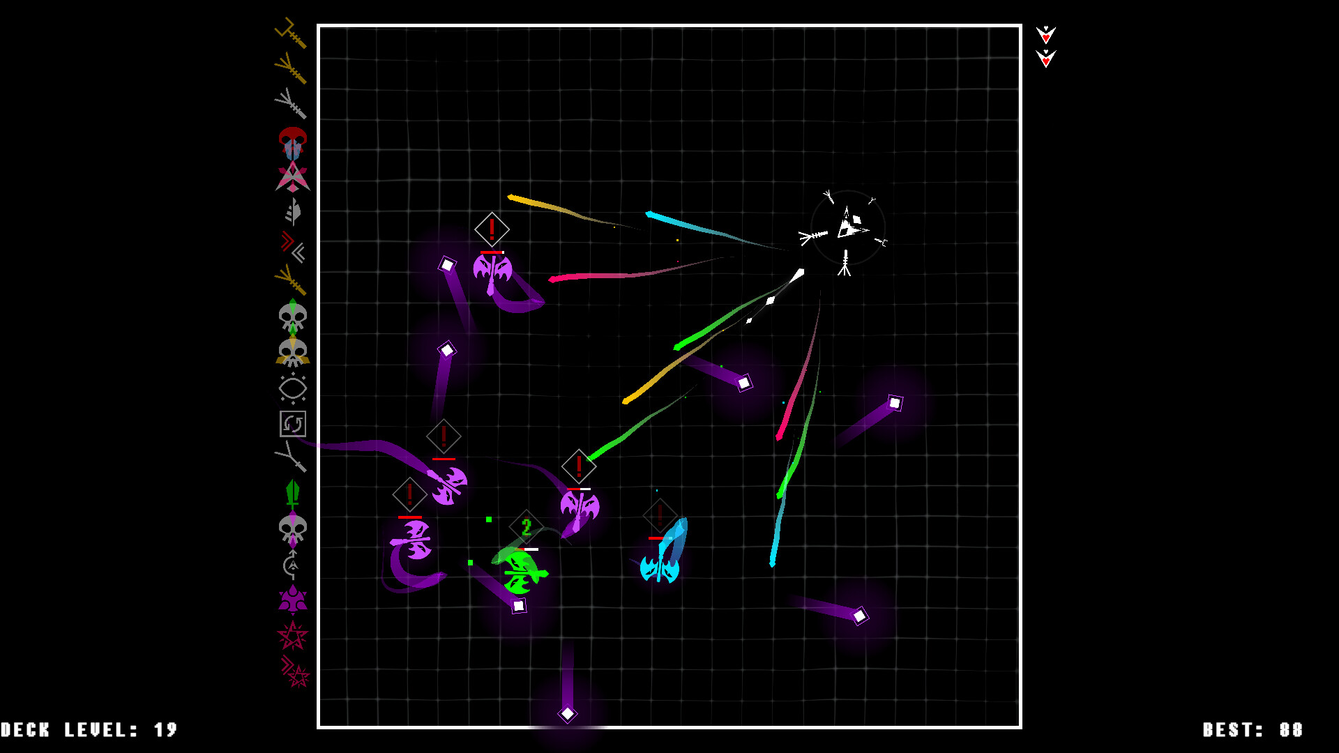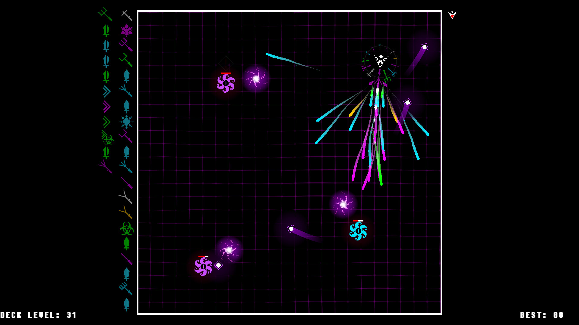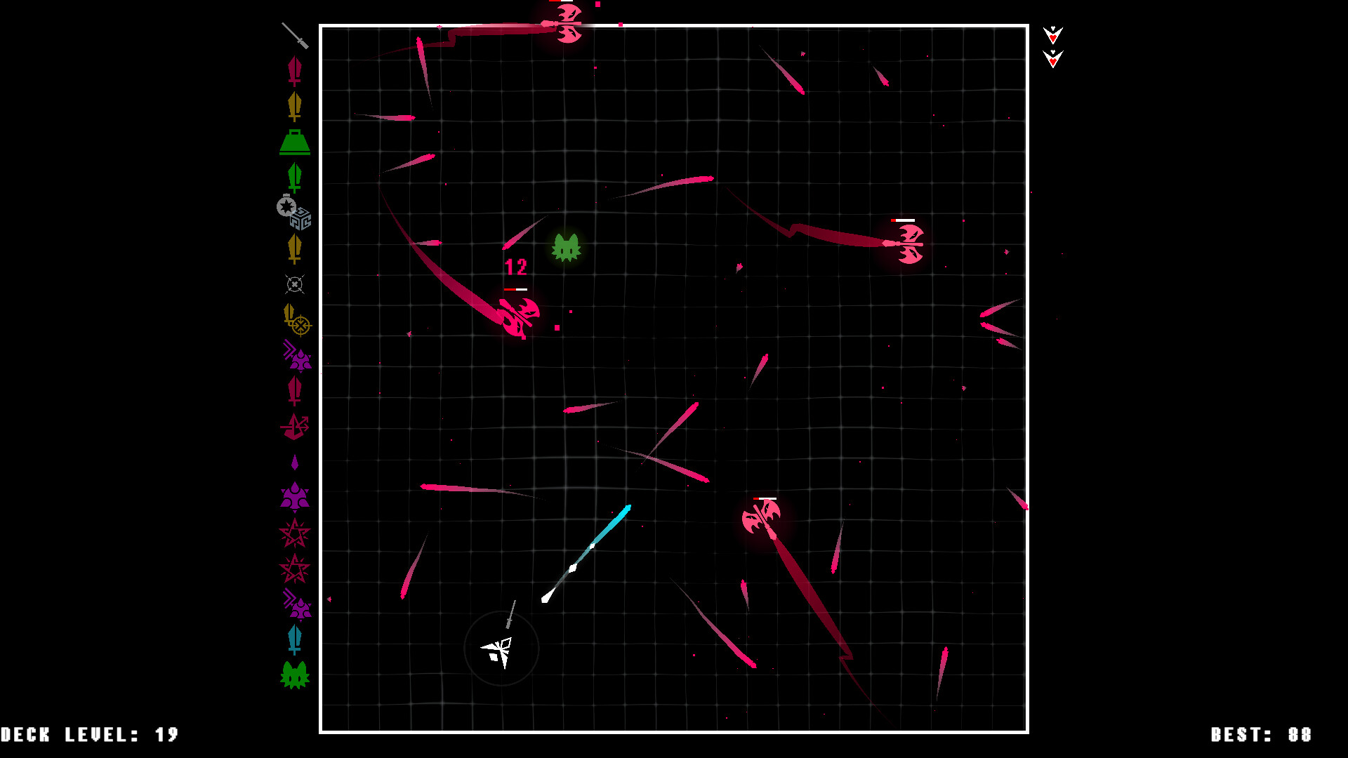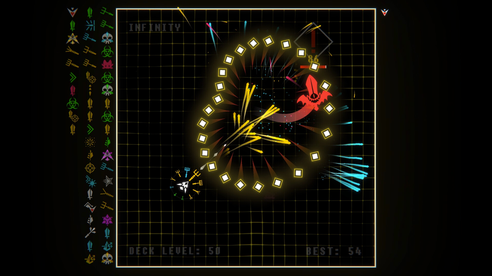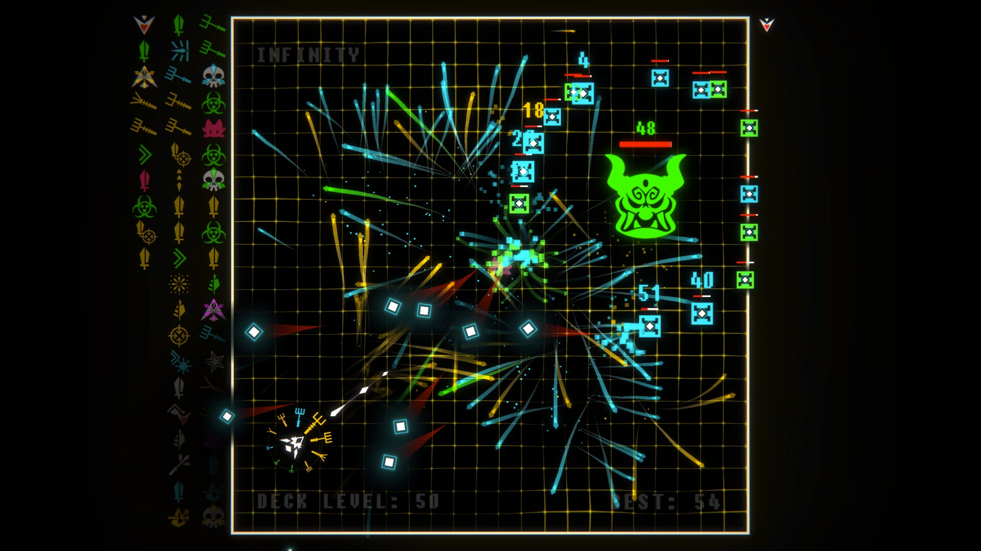 GunDeck is a twin-stick shooter where the aim of the game is to conquer 100 levels of bullet hell.Amass a ring of guns and blow off fireworks of elemental crystals that come in your choice of corrosive acid, freezing ice, eagle-eye homing, replicating magic, and sledge-hammer blight. After each wave, choose from three dealt cards to add to your growing deck. But choose wisely! These cards will grant you new weapons, power up your shots, earn you companions, curse your enemies— or even curse you! (For a fair trade, of course…) Build yourself a powerful gun deck, or regret it when you meet……the ten big bad bosses that stand between you and the eponymous level. Not only do you get your pick of extra special cards for defeating them, you'll earn yourself new ships with built-in features that change the way you play entirely. (One Gun Run, anyone?)Features: - Hundreds of perks to choose from - Unique perks after boss waves - Loads of steam achievements - Multiplayer local co-op! Classic (A Side): - 100 wicked waves. - 10 bad bosses. - 10 unlockable alternate ships that change the way the game is played. Classic (B Side): - 100 additional waves. - 10 more bosses. - Additional unlockable buffs for the 10 base ships. Infinity: - No cap on number of waves. - Compete for top spot in leaderboard. - 5 additional unlockable ships. PICK YOUR PERKSChoosing from hundreds of cards makes every run a completely different experience. BUILD YOUR ARSENAL Pick up gun cards, to add guns to your stack. Your ship will fire through your entire stack before reloading. FIGHT YOUR FOESDozens of unique enemies square off with you, each with their own vile volleys. BEAT BOSSESThe big bads present you with quirky mechanics you'll have to figure out on the fly for victory, and reward you with special perks. EARN NEW SHIPSSurvive bosses to earn a whopping ten modes that change the gameplay. Make your runs easier, harder, or just plain weird.PLAY WITH FRIENDSInvite your closest friends to challenge any game mode in a side by side co-op frenzy of fun. Share a couch, or use Steam's Remote Play to play with friends online.CLIMB THE LEADER BOARDCompete against the world's best GunDeck players in a race to the furthest infinity level, using the least ammount of resources. Далее