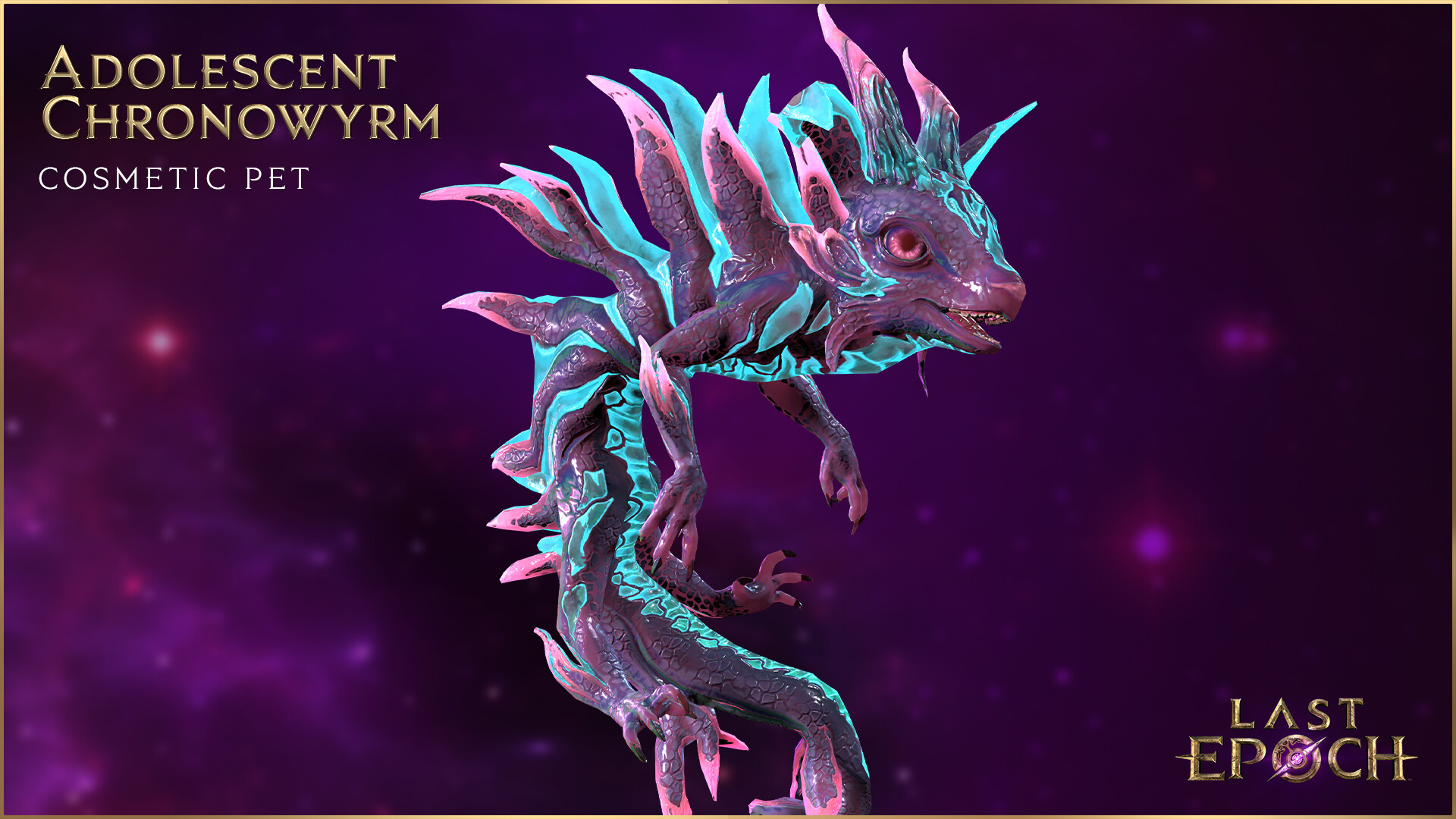 Adolescent Chronowyrm. You are not sure whether this creature has existed for years or millennia, but they have chosen to join you on your quest through Last Epoch instead of attacking you, and for that, you are thankful. The Adolescent Chronowyrm is a Cosmetic Pet that can join you on your Travels. “On Chronowyrms, Beyond the world we knew and outside the flow of time is the place we find ourselves now, a place where the detritus of reality drift together, a graveyard of dead timelines. Here there be dragons. The sanctuary we have found here in the ruins of our old home, suspended over an infinite abyss, has gained visitors. Small dragon hatchlings that the other survivors and travelers have come to call chronowyrms. They float around the ruins, endlessly curious about the new visitors to this remote place, though the vast shadows of cutting through the dark below and the sound of the distant roars has me worried about how large these things can grow. Most of the people stranded here are delighted by the visits of these hatchlings, some even taking them as pets and adorning them with gold or even armor. Even they know to stay away from the chronowyrms that crackle with sparks and glow with arcane power. Some of the remaining Elders theorize that these Chronowyrms have been feeding on the distant storms that can be seen far off in the distance, often surrounding dense clusters of floating crystal. They have also noticed that as the lightning around these gatchings grows more volatile, crystals have begun to form on their scales to the point of completely covering these thusly dubbed Crystal Chronowryms. One has to gaze out into the abyss and catch a glance at one of the clusters of crystal that have shattered, bringing to mind a hatched egg, and remember the titanic shadows that swim in the darkness below…” - Elder Pannion Далее