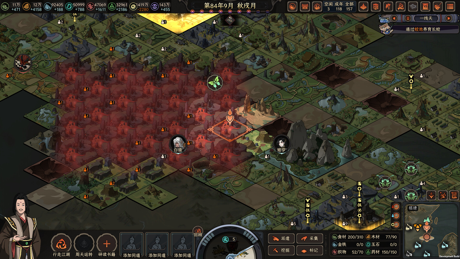 新年伊始,万象更新;真龙降世,祥瑞福臻。五方神龙同贺岁,福禄寿喜齐临门!《太吾绘卷》为您诚挚献上免费DLC《五方神龙》,祝您万事如意,龙年大吉!时值新春佳节,太吾村中有客来访,却是一对自称“豢龙氏”的神秘兄妹。二人为找寻潜逃下界的“五方神龙”,特来请求太吾帮忙……传说神龙遍身是宝,若能将其降服,得到遗留仙物,还可孵化蛟卵,养成长蛟,尽享养育乐趣!养育成功的长蛟可收为代步,陪伴太吾游历大好山河;若能顺利化形,成为龙生九子之一,更是威力大增!在《五方神龙》DLC中,可养育的长蛟多达31种,此外还增加了10种新代步,5种特殊地形,5件新衣装,以及相关新剧情、新道具、新互动、新的特殊功能,期待您的赏玩。【触发条件】(1)太吾村的规模等级达到6。(2)太吾已攻破第3座剑冢,使得相枢的侵袭进度达到第4级。(3)太吾进入“出神之地”后,将无法再触发《五方神龙》。【降服神龙】(1)五方神龙下界临凡,随从小龙相伴左右。(2)神龙所在的一定区域内会发生地形变化,依照五行属性呈现5种不同特殊效果。太吾身在其中,若无“蛟鳞衣”加护,而“七元”赋性也达不到相应要求,则会对自身造成额外伤害。(3)太吾若能克服困难,顺利出手降服神龙,首次胜利将会获得相应五行属性的“蛟鳞衣”。而每次降服神龙、小龙,都有几率获得其遗留的“蛟卵”“龙鳞”等仙物,各有妙用。(4)太吾若不喜打斗,也可在神龙盘踞之地进行挖掘,或许能挖到“蛟卵”或“龙鳞”。(5)“蛟卵”“龙鳞”与养育长蛟、化形龙子之事息息相关。【养育长蛟】(1)豢龙氏兄妹长留太吾村中,为太吾打造专门养育长蛟的“蛟池”。(2)太吾可将蛟卵投入蛟池,进行孵化,待长蛟破壳而出,即可开始养育。(3)通过10项侧重点各异的养育方针,配合4大类过月随机事件,消耗资源,提升长蛟各项属性。(4)根据3种不同的养育态度,还会影响长蛟对应属性的加成量与驯服度的增减。(5)太吾可以自定义在蛟池中的长蛟姓名。(6)升级太吾村到相应等级,可增加蛟池的数量。【繁育长蛟】(1)长蛟有雌雄之分,太吾亦可通过配对长蛟,令它们在蛟池中繁育后代。(2)每条长蛟的肤色、五行属性和处世立场都可能会不一样。(3)长蛟养育成功后,无论化形与否,太吾均可将其收为代步。(4)由长蛟繁育出的蛟卵,在破壳成蛟后,将按一定比例获得属性加成。【化形龙子】(1)传说龙生九子,各有威能。而长蛟本非真龙,若能化形为9种龙子之一,充当代步时的助益将会有所提升。(2)已育成的长蛟能否顺利化形龙子,又会化为何物,取决于养育期时太吾的选择。(3)装备龙子代步时,9种龙子给太吾提供的驭使效果各有迥异。(4)若太吾装备龙子代步,将有几率触发相关过月事件,9种龙子个性不一,事件内容也大不相同。【逃离蛟池】(1)如果太吾疏于照管,未育成的长蛟有可能会从池子里逃走,成为地图上的野兽!(2)根据处世立场的差别,长蛟逃走的几率也不一样。(3)太吾可通过在战斗中使用绳索绑架的办法,将逃离蛟池的长蛟抓回,重新养育。新年伊始,万象更新;真龙降世,祥瑞福臻。五方神龙同贺岁,福禄寿喜齐临门!《太吾绘卷》为您诚挚献上免费DLC《五方神龙》,祝您万事如意,龙年大吉!时值新春佳节,太吾村中有客来访,却是一对自称“豢龙氏”的神秘兄妹。二人为找寻潜逃下界的“五方神龙”,特来请求太吾帮忙……传说神龙遍身是宝,若能将其降服,得到遗留仙物,还可孵化蛟卵,养成长蛟,尽享养育乐趣!养育成功的长蛟可收为代步,陪伴太吾游历大好山河;若能顺利化形,成为龙生九子之一,更是威力大增!在《五方神龙》DLC中,可养育的长蛟多达31种,此外还增加了10种新代步,5种特殊地形,5件新衣装,以及相关新剧情、新道具、新互动、新的特殊功能,期待您的赏玩。【触发条件】(1)太吾村的规模等级达到6。(2)太吾已攻破第3座剑冢,使得相枢的侵袭进度达到第4级。(3)太吾进入“出神之地”后,将无法再触发《五方神龙》。【降服神龙】(1)五方神龙下界临凡,随从小龙相伴左右。(2)神龙所在的一定区域内会发生地形变化,依照五行属性呈现5种不同特殊效果。太吾身在其中,若无“蛟鳞衣”加护,而“七元”赋性也达不到相应要求,则会对自身造成额外伤害。(3)太吾若能克服困难,顺利出手降服神龙,首次胜利将会获得相应五行属性的“蛟鳞衣”。而每次降服神龙、小龙,都有几率获得其遗留的“蛟卵”“龙鳞”等仙物,各有妙用。(4)太吾若不喜打斗,也可在神龙盘踞之地进行挖掘,或许能挖到“蛟卵”或“龙鳞”。(5)“蛟卵”“龙鳞”与养育长蛟、化形龙子之事息息相关。【养育长蛟】(1)豢龙氏兄妹长留太吾村中,为太吾打造专门养育长蛟的“蛟池”。(2)太吾可将蛟卵投入蛟池,进行孵化,待长蛟破壳而出,即可开始养育。(3)通过10项侧重点各异的养育方针,配合4大类过月随机事件,消耗资源,提升长蛟各项属性。(4)根据3种不同的养育态度,还会影响长蛟对应属性的加成量与驯服度的增减。(5)太吾可以自定义在蛟池中的长蛟姓名。(6)升级太吾村到相应等级,可增加蛟池的数量。【繁育长蛟】(1)长蛟有雌雄之分,太吾亦可通过配对长蛟,令它们在蛟池中繁育后代。(2)每条长蛟的肤色、五行属性和处世立场都可能会不一样。(3)长蛟养育成功后,无论化形与否,太吾均可将其收为代步。(4)由长蛟繁育出的蛟卵,在破壳成蛟后,将按一定比例获得