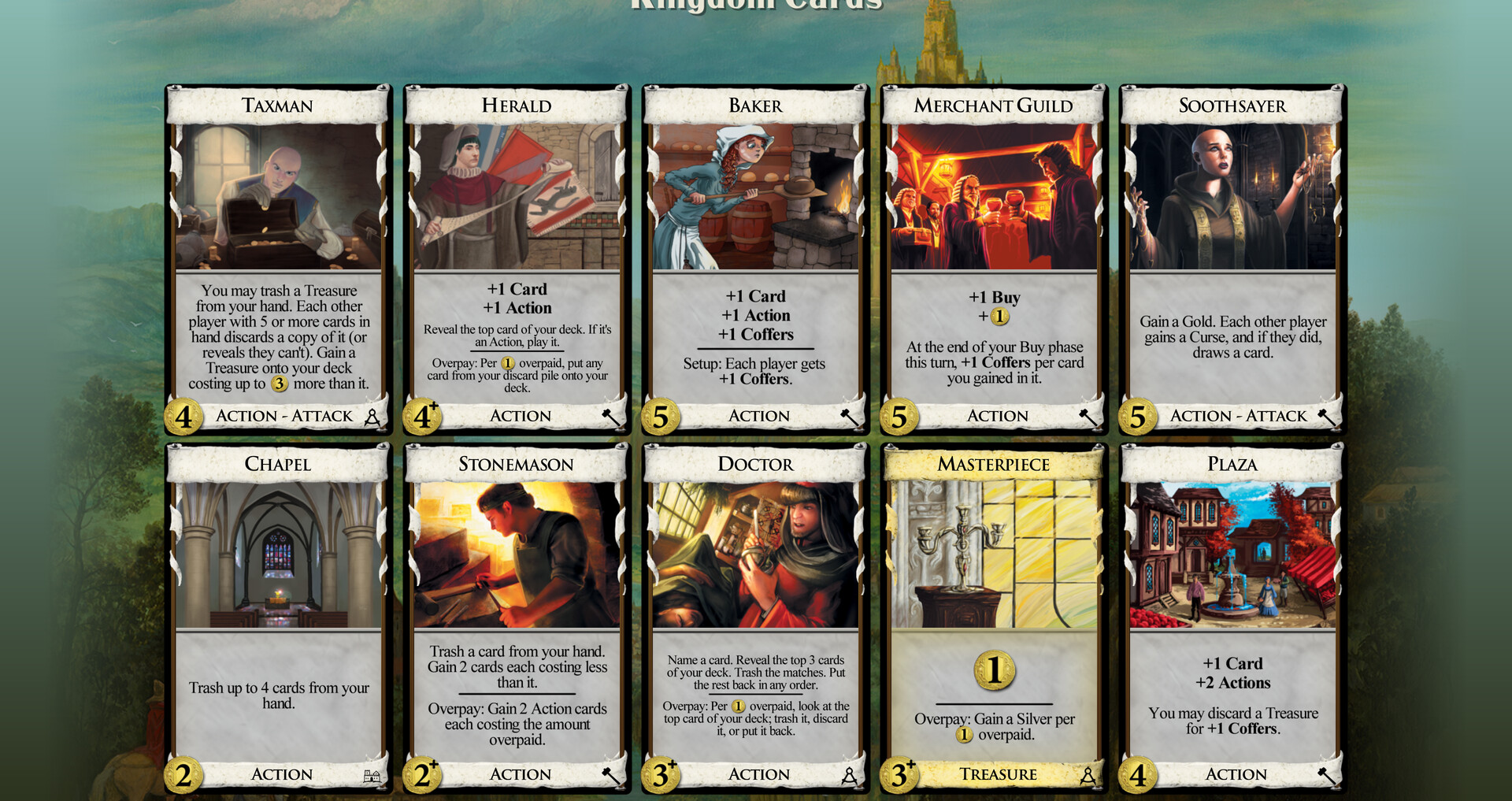 This 1st Edition pack requires owning the corresponding expansion to play. The 3 cards removed from Guilds when it went to its 2nd edition. These were removed for a reason! But if you want them anyway, here they are.Included Cards. DoctorMasterpieceTaxman