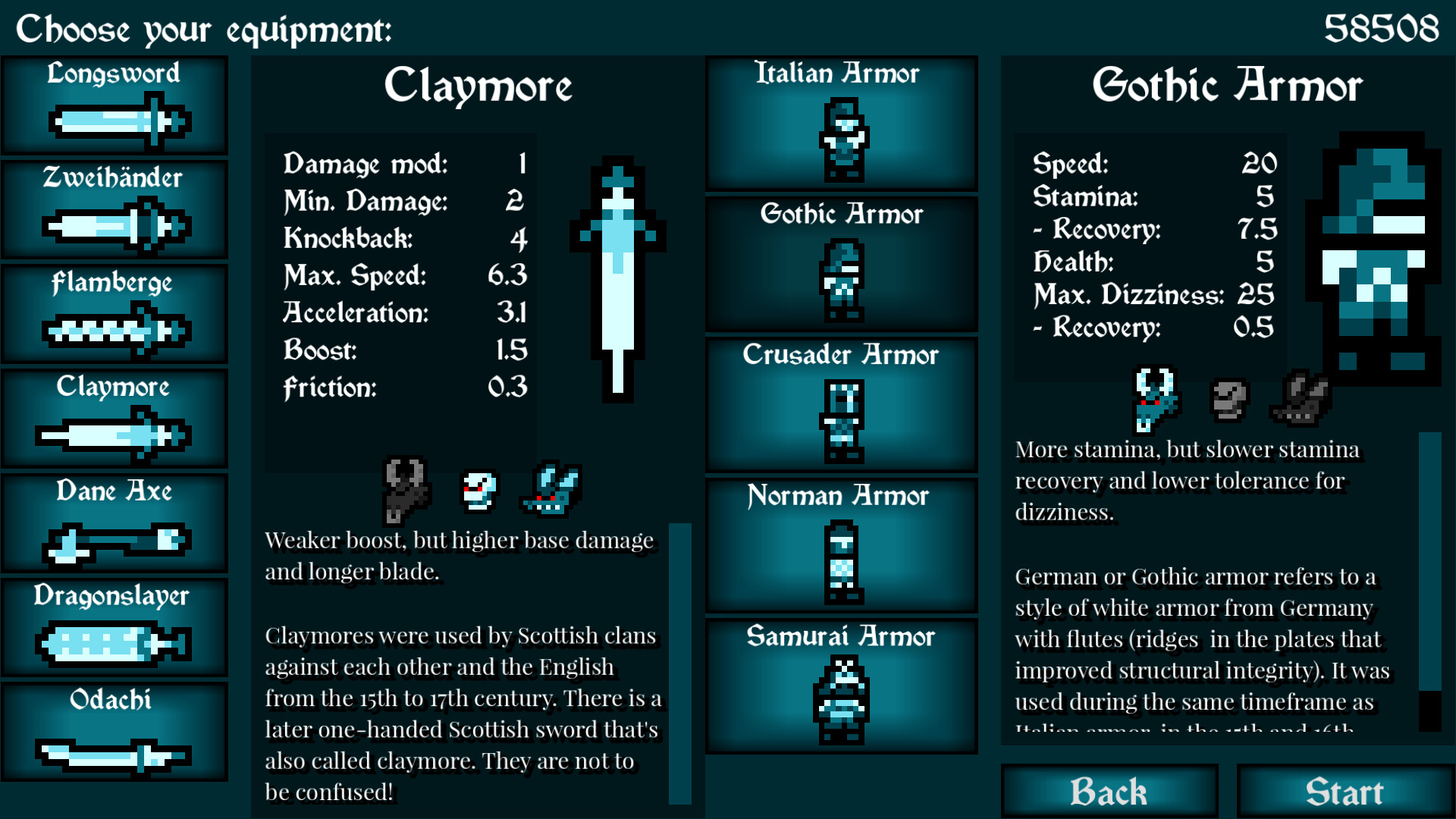 Melee based horde survival Swing your blade in circles, either clockwise or counterclockwise Weapons have momentum and can bounce off obstacles Unique dizziness mechanic to keep you on your toesDizzying Sword-spinning Combat. You sweep your blade around in a large circle, getting faster and faster, but if you spin in the same direction for too long, you'll start to get dizzy and eventually lose your sense of direction, leaving you open to enemy attacks. Better start spinning your blade the other way before that happens. You must find the right moment to do so.Your footwork is important, too! Your movement will influence that of your blade and vice-versa, opening up a higher skill-ceiling. Positioning, quick decision-making and environmental awareness are key to surviving the endless onslaught.Wave Based Horde Survival. A multitude of enemies with different abilities and behaviour patterns will come at you in huge waves with dozens or even hundreds of enemies on screen at once. Each successive wave will have different enemy types and increased levels of challenge. There are several battlefields to choose from, each with different environmental factors and enemy composition. At the end of each one, you will face a powerful boss monster with unique abilities. Try to beat him with every weapon to earn trophies and make it further and further to increase your highscore!Quick and Satisfying Action. The game lets you get right into the satisfying experience of seeing your defeated enemies burst into a cloud of pixels. A typical run lasts only a couple of minutes, getting longer the better you play. Perfect for a quick play session in-between, or a longer one trying to up your game and beat your highscore.Historical Weapons and Armor to Unlock. By surviving for longer and longer each attempt and defeating hundreds or thousands of monsters, you will earn points that you can spend to unlock a variety of weapons and armor for future runs. Each piece of equipment has different looks and stats that change the way you play.Most weapons and armor in the game are based on actual historical ones, so their descriptions include a brief overview of the historical context. Далее