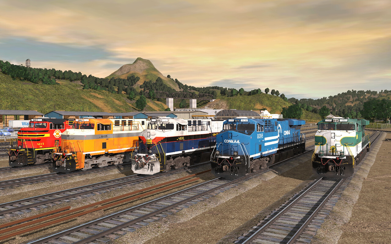 The Evolution Series is a line of diesel locomotives built by GE Transportation Systems, initially designed to meet the U.S. EPA's Tier 2 locomotive emissions standards that took effect in 2005. The first pre-production units were built in 2003. Evolution Series locomotives are equipped with either AC or DC traction motors, depending on the customer's preference. All are powered by the GE GEVO engine. The ES44AC (Evolution Series, 4,400 hp, AC traction) replaced the AC4400CW model in the General Electric catalogue. These locomotives have been ordered by every Class I railroad in North America. This dlc features the ES44AC in five Norfolk Southern Heritage liveries. Included Locomotives: - NS 8098 Conrail - NS 8099 Southern Railway - NS 8101 Central of Georgia - NS 8105 Interstate - NS 8114 Norfolk Southern Features: - animated drivers cabin - animated wipers - animated windows - animated rear cabin door - ACS coupling supported - functional cabin displays (distance, traction, fuel, brake status, throttle, warning lights for various loco functions and more) - animated fans - custom sound - custom head and ditchlight - crossing light support (30 sec auto bell and ditchlight) - 3 weathering skins for locomotive and bogies (can be assigned individually) - dynamic fuel consumption - can run out of fuel if you want it (off by default) Далее