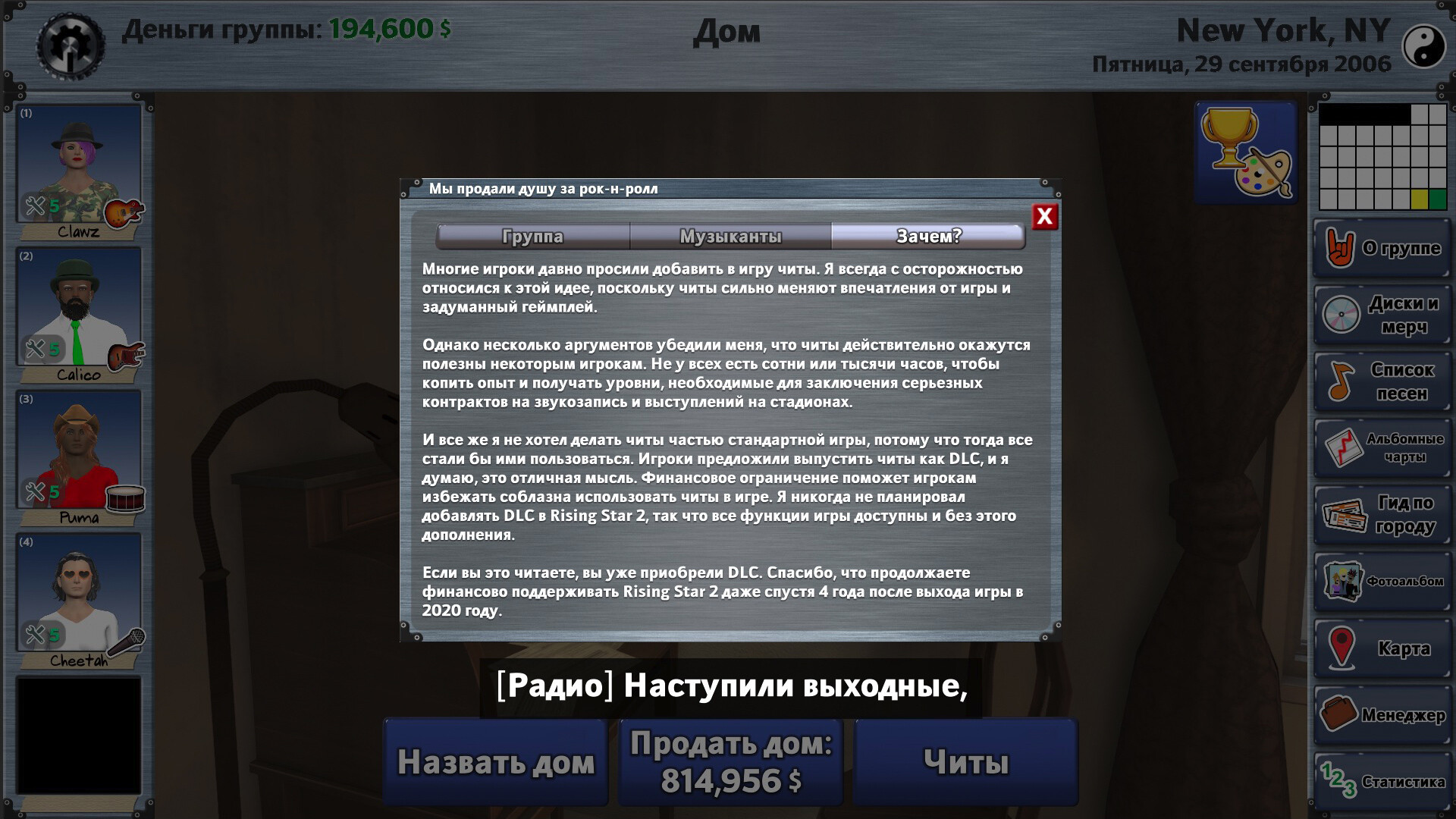 Легенда. В самом сердце Дельты Миссисипи молодой блюзмен Роберт Джонсон бороздил пыльные дороги, пытаясь проторить путь к мечте и устоять под тяжестью несбыточных желаний. Он играл на старой гитаре со стертыми струнами, на которых уже проступила ржавчина, и часто репетировал под мерцающим светом звезд. Роберт хотел стать величайшим гитаристом в истории, но, как он ни старался, он всегда чувствовал, что посредственность преследует его, точно утренний туман.В ту судьбоносную ночь выступление выдалось особенно неудачным, и Роберт отправился к легендарному перекрестку. Считалось, что в этом месте можно заключить сделку со сверхъестественными силами. Он стоял с гитарой за спиной и чувствовал, как его мечта утекает сквозь пальцы. Но вдруг Роберт почувствовал, что на залитой лунным светом пыльной дороге есть кто-то еще.Из тени появился высокий силуэт, окутанный самой тьмой. Он представился бархатным голосом, который рассеивался в ночи, словно дым: «Я тот, кого называют дьяволом». Глаза его блестели, будто разбитое стекло. «В твоем сердце пылает огонь, Роберт Джонсон. Я могу сделать тебя величайшим гитаристом, но взамен ты отдашь мне свою душу».Роберт сомневался. Необходимость принять решение тяготила его сердце, точно саван. Он вспомнил все бессонные ночи, напрасно проведенные с гитарой в руках. А затем представил, как стоит на огромной сцене. Его пальцы танцуют на грифе, а толпа затаила дыхание. В этот миг мечта пересилила осторожность, и Роберт кивнул, определив свою судьбу. Его голос дрожал, когда он произнес: «Я согласен».Дьявол взмахнул рукой, и Роберта теплым объятием окружила потусторонняя сила. Когда тьма рассеялась, Роберт остался один, но он чувствовал, что внутри него что-то изменилось. На следующий день он взял гитару и сыграл аккорд. Воздух наполнил богатый насыщенный звук, совсем не похожий на то, как Роберт играл раньше.Молва о его невероятном таланте распространялась со скоростью света. Его принимали в каждом баре, и в каждое свое выступление он вкладывал всю душу. Зрители были заворожены: они танцевали, плакали и без остатка отдавали себя его чувственной музыке. Роберт стал легендой благодаря своему невероятному мастерству и этой мистической истории.Купив это DLC, вы сможете использовать читы, чтобы быстрее и легче прийти к славе. Получить к ним доступ можно на рабочих столах в ваших внутриигровых домах. Не хотите утомительно проходить уровень за уровнем? Тогда читы для вас. Далее