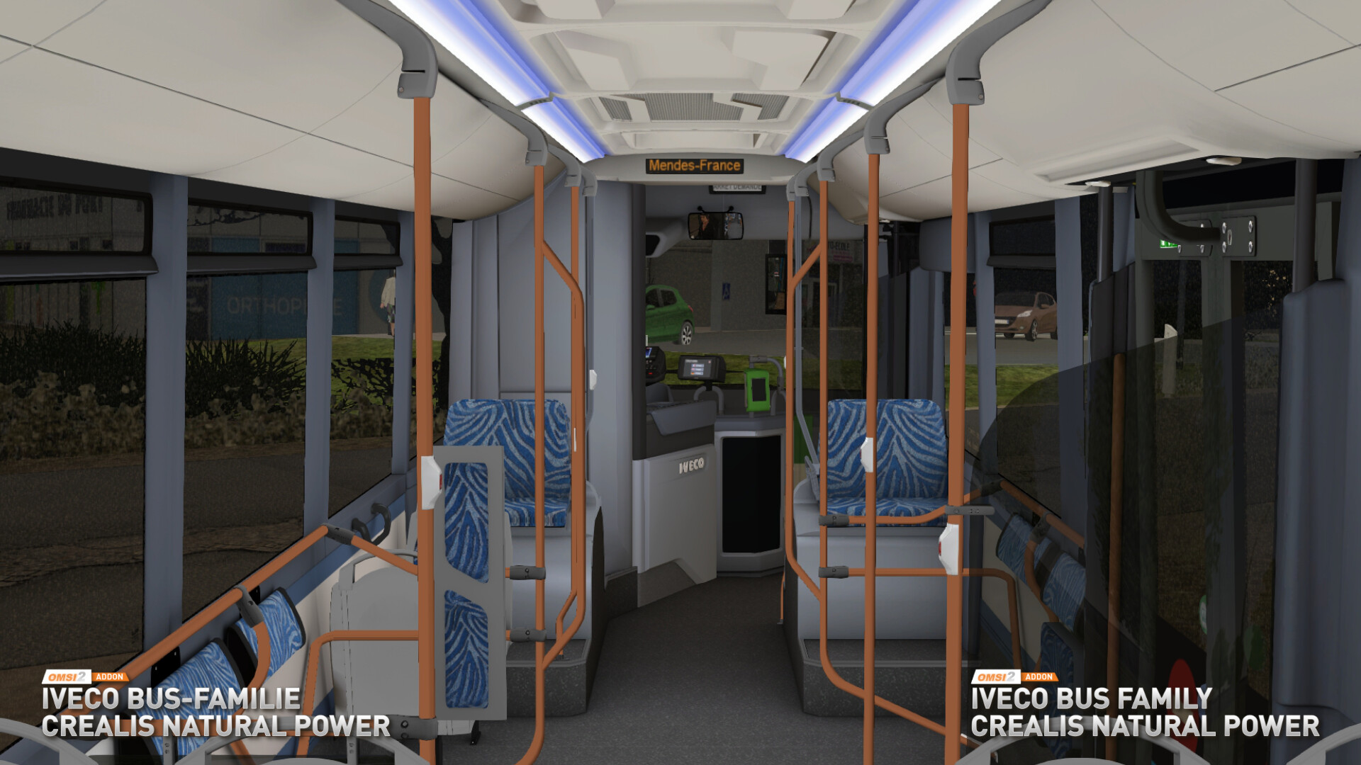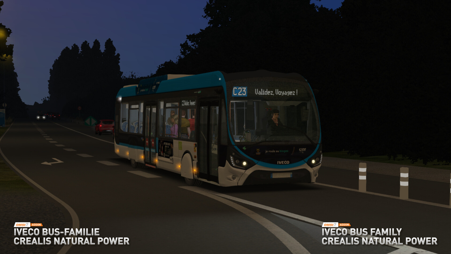 Dive into the ultra-realistic world of the IVECO Bus fleet with the IVECO Bus Family Crealis Natural Power extension for OMSI 2!Since 2022, the IVECO Crealis Cursor 9 NP with its functional, modern design has dominated routes with high service requirements and delivers a unique driving experience.In this extension, you'll find the Crealis available in both standard and articulated versions, each offering different door configurations (internal or sliding, with an optional automatic opening feature) to suit all your missions. Bus enthusiasts will also appreciate the 3 seating models available, allowing for deep interior customization, while the option to install low windows adds an extra touch of realism.Please note that the facelift planned for 2024 is not included in this version - due to the low number of units in real use.The Add-on IVECO Bus Family Crealis Natural Power is a must-have for anyone seeking a truly authentic and tailor-made OMSI 2 bus driving experience. Hop on board and rediscover the joy of driving an exceptional bus!Features:Standard and articulated versions with various door configurations (internal and sliding, with optional automatic opening)3 seating models available in different variantsAdvanced customization optionsOption for low windows5 interior lighting colors available (white, green, blue, red, orange)Podium 2 dashboard equipped with the NAVINEO interface and Yard TicketingMild-Hybrid option with a Voith 4-speed transmission and Voith NXT 7-speed for the mild-hybrid versionExterior displays compatible with the St-Servan 3.00 format Далее