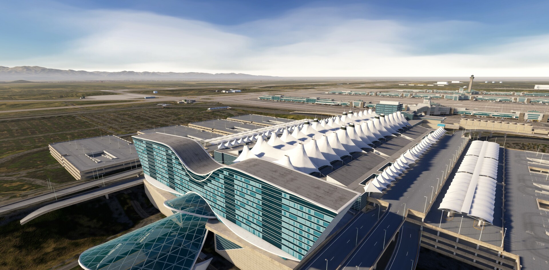 IATA: DEN, ICAO: KDEN, FAA LID: DEN an international airport often called by locals as DIA. One of the largest airport in the Western United States area, and the second largest on Earth, Runway 16R/34L, with a length of 16,000 feet (3.03 mi; 4.88 km), is the longest public use runway in North America. One main terminal and 3 concourses that come with more than 160 gates, it is going be a busy airport to control in game, depending on the schedule you set. KDEN has its eye candy too with award-winning architecture and magnificent views of the Rocky Mountains create a unique view. Jeppesen Terminal's internationally recognized peaked roof, is reflective of snow-capped mountains and evokes the early history of Colorado, when Native American teepees dotted the Great Plains. Далее