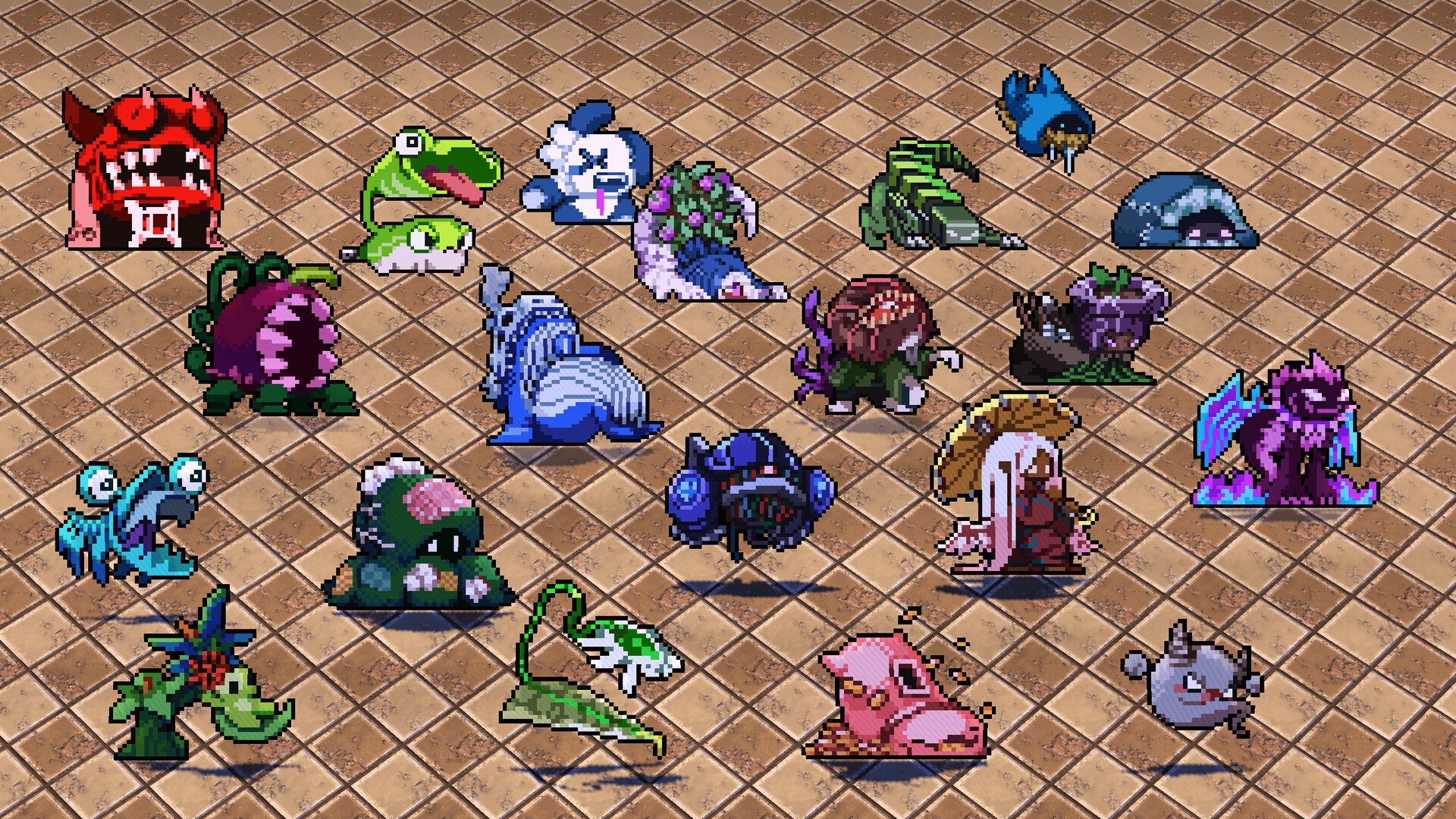The highly anticipated third installment of the pixel art monster sprite collection by pixel artist Mokemo. This pack includes 20 unique monsters, such as parasitic creatures, bizarre machines, spirits trapped by curses, and stuffed animals with a will of their own. Whether as formidable foes standing in the player's way or as trusty allies, incorporate these charming monsters into your work and breathe new life into your creations. [Mokemo Factory MONSTER PIXEL PACK Vol.3]Contents 2D Stamps: 20 types Color Variations: 3 colors for each monster Outline: 3 types: none, black, and color Image Size: 48x192 (4 animation patterns) Далее