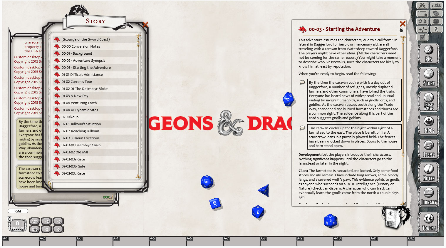 Dreams of the Red Wizards. Scourge of the Sword Coast is a D&D adventure designed for 2nd-level characters. This adventure is the first part of the Dreams of the Red Wizards campaign, which continues with the Dead in Thay adventure. Over the course of these two adventures, players can face off with major villains of the Forgotten Realms campaign setting."Dreams of the Red Wizards: Scourge of the Sword Coast" (2014), by Tito Leati, Matt Sernett, and Chris Sims, was the adventure for Season 17 of D&D Encounters.This Module Includes:the entire fifth edition contents of Scourge of the Sword Coast adventureimage handouts that can be shared with players collectively or individuallymaps containing information for the Dungeon Master (DM) only and with all locations pre-linked to story entries which may contain additional DM notes, boxed text, encounters, images and treasure parcelsmaps with all hidden information removed and resized for use as tactical combat mapstokens for many of the monsters in the module. When no token is available, a letter token is used to represent the NPCXP for encounters that can be dragged to the party sheet and awarded to the players as they complete themSearchable monster indexes by CR, type and in alphabetical orderRequirements: The 5E Ruleset Далее
