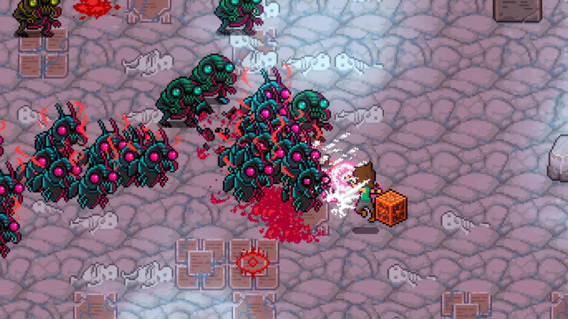 Deathstate is a roguelike, bullet hell, single stick shooter set in a bizarre world of dimensional exploration for pc and mac. You play as a number of unique characters trying to discover the fate of Professor Elinberg who opened a portal to the void. Great and terrible mysteries and even greater treasures await if you are bold or foolhardy enough to go beyond the beyond.The Bizarre World of DeathstateIn Deathstate, you are a traveller of the outer realms. You have discovered the secrets of deep astral projection by entering into a fully death-like meditative state. While in your Deathstate, you can go beyond the beyond to realms previously only imagined by those enlightened or mad enough to dwell upon them. Tread lightly though, for these far planes of demi-existence that you choose to explore are extremely hostile to mortal souls.GAME FEATURES. Explore a Unique Take on Classic 16-bit WorldDeathstate features a unique combination of retro 16-bit visuals and advanced Unity shader effects. Worlds full of painstakingly pixeled environments, enemies, and bosses will warp and shift before your eyes as your mind becomes subjected to the chaotic influence of the warp.Battle Hordes of Enemies in Twitch GameplayThe dimensions within Deathstate are teeming with nightmarish beings. Being a procedural bullet-hell, it's up to player knowledge and skill to survive emergent dangers in gameplay.Unlock Multiple Player Characters with Unique AbilitiesOver repeat runs, players will unlock new characters with unique abilities. Like you, these companions are locked in uncovering the secrets of the Deathstate. New player characters will enable players to customize their starting build, increasing their chances of surviving the horrors that lie beyond.Discover Mystic Tomes, Ritual Blades, Relics, and OrgansThe treasure you discover in Deathstate pushes the limits on cool and bizarre game loot. You will discover arcane grimoires, mystic weaponry, burial masks, and gem encrusted idols. Most prized are organs dropped by Elite enemies and Bosses. Through these organs supernatural powers become yours, allowing you to push your character beyond the limits of mortal power! Далее