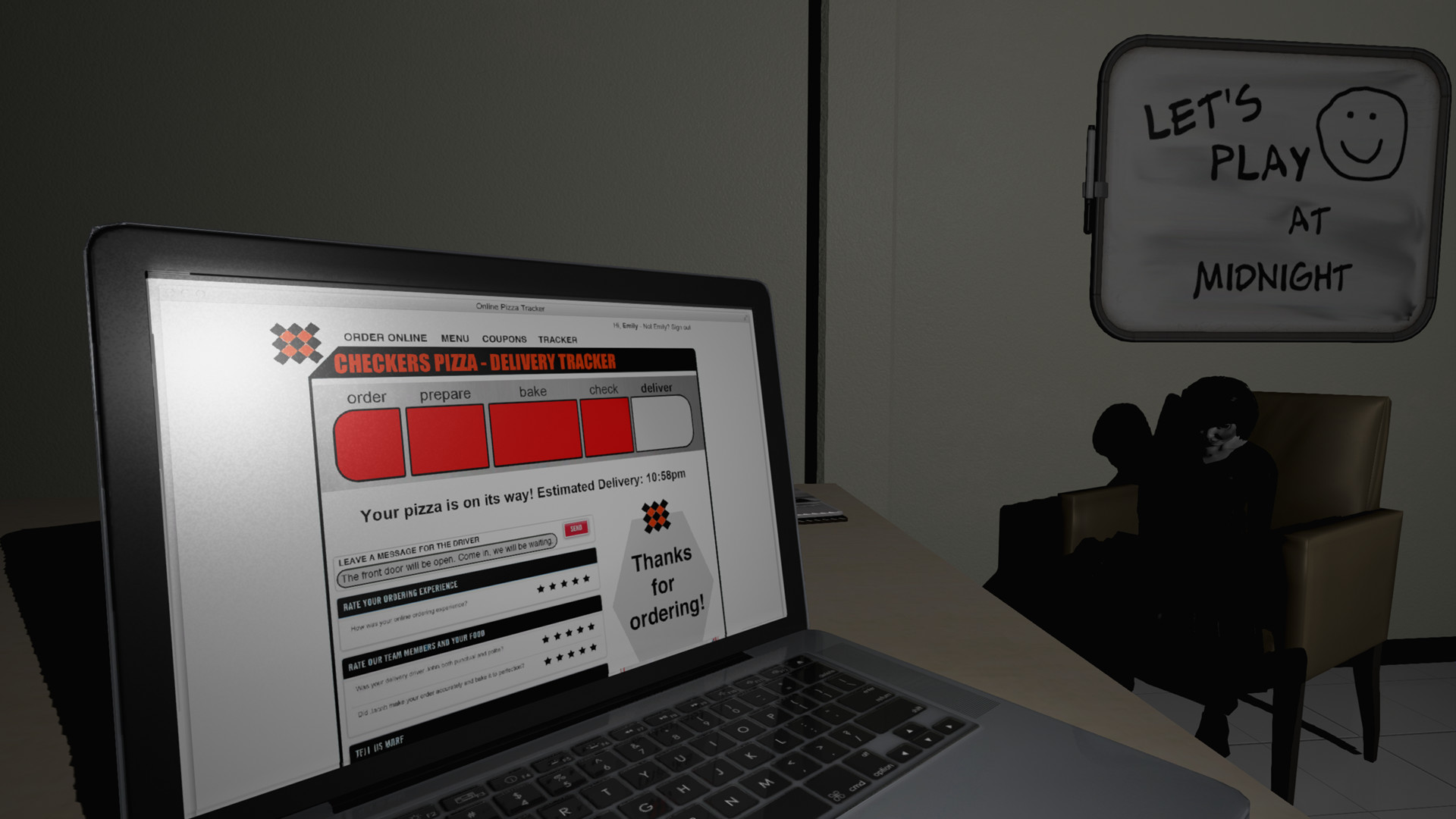 Сейчас 11 вечера и это последний дом на твоем маршруте. Окна заколочены, двор зарос, но свет горит, а входная дверь открыта. Это странное место для доставки пиццы. Ты начинаешь промокать от дождя, поэтому нерешительно шагаешь внутрь дома. Не нужно было этого делать. «Эмили хочет играть» — это страшная игра ужасов на выживание с элементами стратегии. Ты играешь роль доставщика пиццы, который попадает в ловушку Эмили и ее трех кукол. Куклы — живые и они бродят по дому вместе с тобой. Эмили и ее куклы хотят играть, поэтому тебе нужно научиться правильно играть в их игры или можешь попрощаться со своей жизнью. Попробуй найти записи, заметки и другие подсказки, которые помогут тебе раскрыть историю и остаться в живых. Тебе нужно пережить эту ночь и сбежать из дома Эмили. Далее
