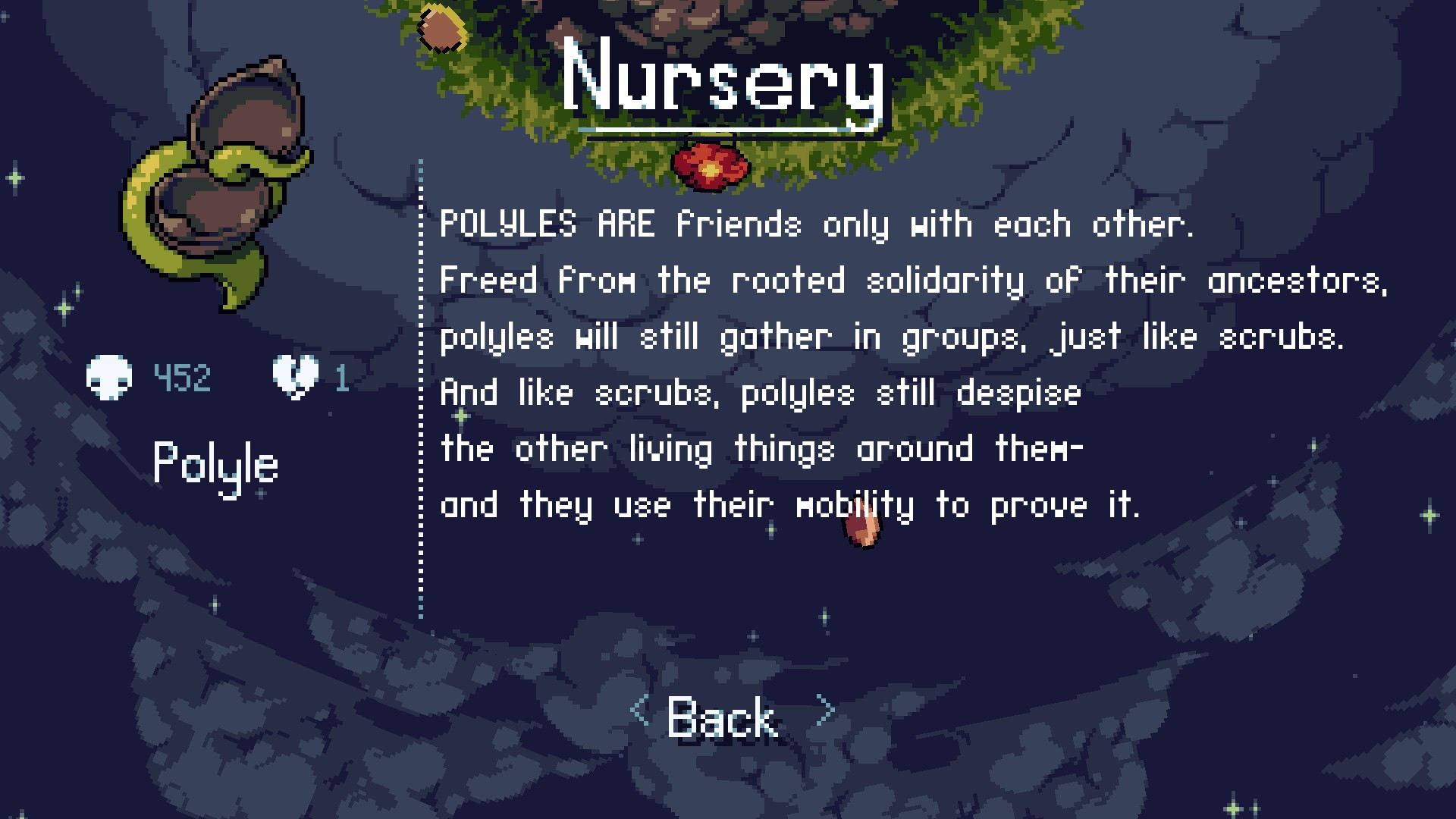 An astronaut has crash-landed on an alien planet, and it's started to rain.. seeds. Germination is an arcade-style platformer about surviving an onslaught of carnivorous flora by stomping on their heads. Chain consecutive stomps to double-jump endlessly and combo your way to bonuses and powerups. You'll need to make precise work of your jumping - the only platforms you'll find are your enemies' heads.Features:Difficult campaign hiding a deadly boss.Endlessly-looping Hard Mode for overachievers.Nursery with Unlockable Plant Biographies and artwork.Hand-drawn pixel animations and original soundtrack. Далее