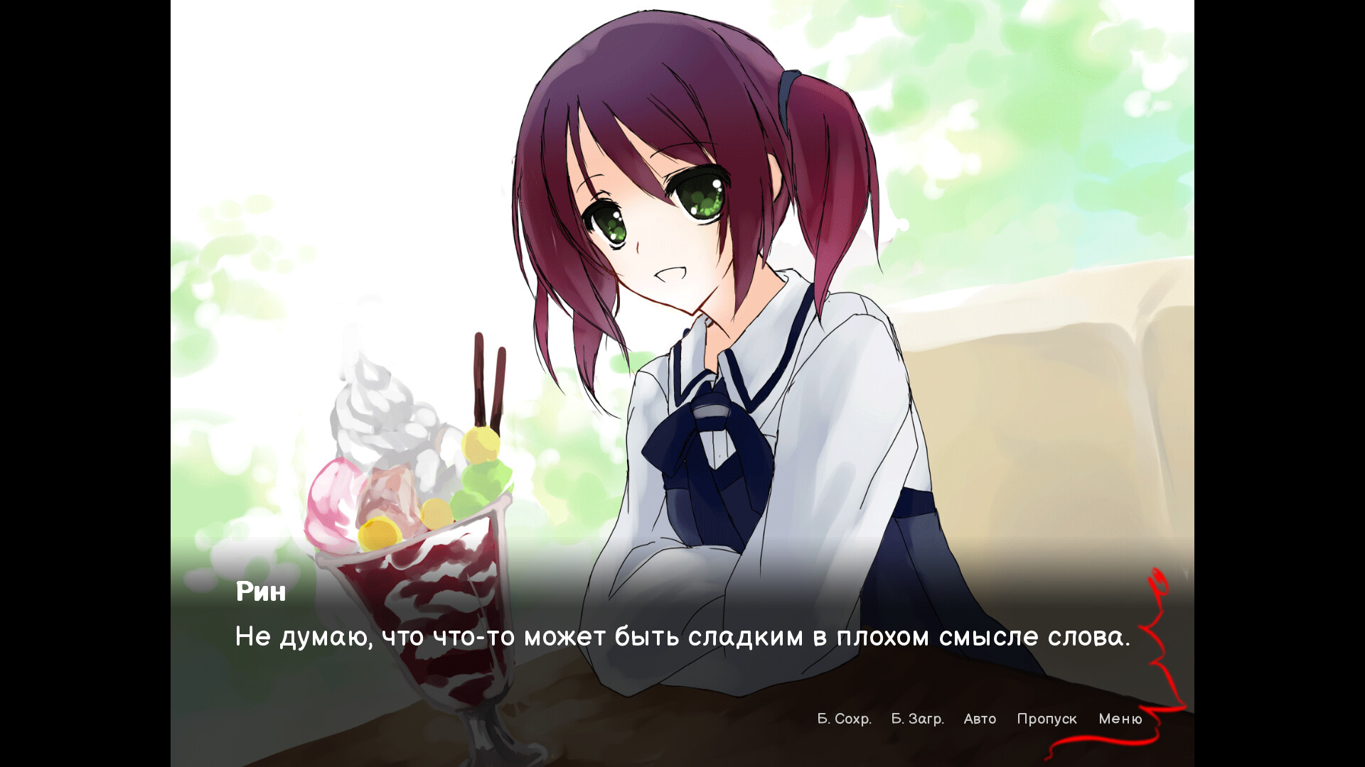 "Я - человек, с которым ты никогда бы не хотел встречаться.". Слёзы Сепии это романтическая визуальная новелла. Она повествует о воспоминании, которое мальчик Марк стремится забыть, и о девочке Майре, которая его откапывает.Они вместе жаждут романтики, которая бывает лишь в книгах, но понимают, что любовь не всегда выглядит так красиво, какой её рисуют.Прекрасно подойдёт фанатам аниме и ВН, которые хотят классическую историю с неожиданным поворотом сюжета!Особенности:❄️ Финальная песня❄️ История на 40000 слов❄️ Галерея с CG, чиби-CG и промо-артом Далее