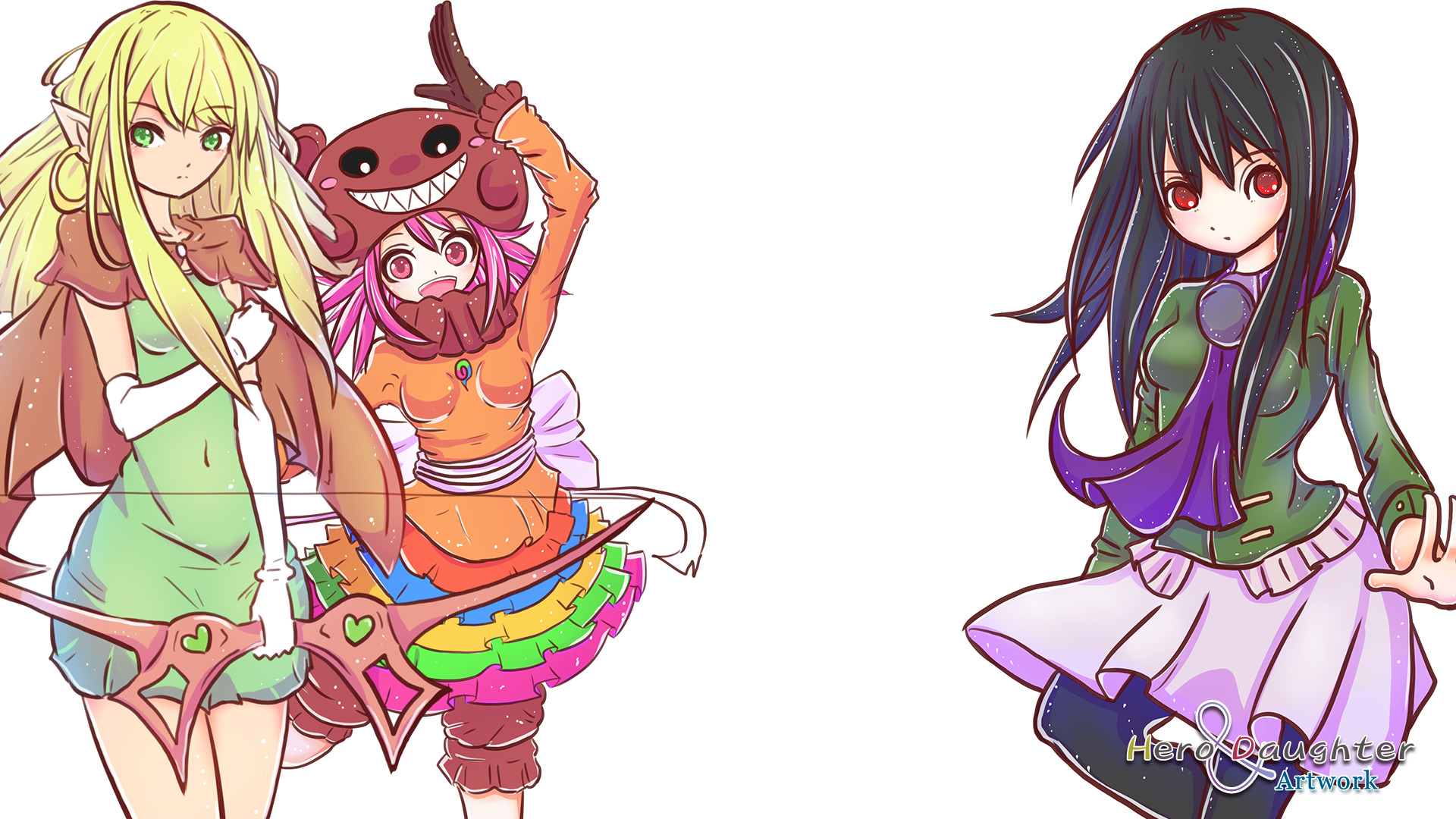 This is the classic story of good old Ralph, on his quest to defeat the diabolical Demon Lord. Ralph has been reduced to Level 1, and must rely on a cast of ladies straight out of the daydreams of the game's creator in order to succeed on his quest! Now you can add a taste of Hero and Daughter+ to your game with this art pack. This resource pack is optimized for RPG Maker VX Ace. IncludesLarge scale concept art of the girlsOne character sheet45 facesheets with emotions44 busts/portraits