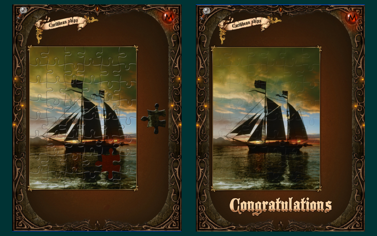 Cool Game for the whole Family!. Classic Jigsaw Puzzle Game with 30 stunning pictures of sea scenery with sailing warships of various ages and countries - from state-of-the-art Western Frigates and Ships-of-the-line to legendary Korean Kobuksons (turtle ships) and Chinese War Junks. Each scene can be solved in 3 different modes, suitable for all puzzle-lovers. Moreover, the game comes with a backstory - an impressive visual novel about risky journey of a Venetian adventurer for the lost treasure.Backstory. From the letter of one Venetian adventurer.. "After many years of perilous travels full of hardships and dangers, I was comforted with the knowledge that I was returning home with priceless cargo..but now we are all prisoners and are at the mercy of hateful Pirates. My priceless cargo, that to them is nothing but a pile of worthless papers, unfortunately caught their leader's attention. All my attempts to explain the value of my scrolls were met with jeers and laughter from these uneducated Barbarians. For the sake of sadistic enjoyment derived from my torments, they cut into pieces all of my precious papers." The note continues.. "Praise Be to the Lord, it had not occurred to anyone setting fire to them in the process. Even in such disarray, I take comfort from knowing the scrolls are not lost to me until the end of time. Reflecting on all those ordeals that I had to undergo in order to collect each of these gems, and to think that in the blink of an eye these savages could have easily destroyed them all." And then the letter concludes.. "I have managed to gather all of the scraps with the hope of preserving them for future generations. If you are reading this message, it makes my heart glad that they have made it to the safety of your keep. Please restore these records as I have indicated, and share their vast knowledge with the world.." Далее