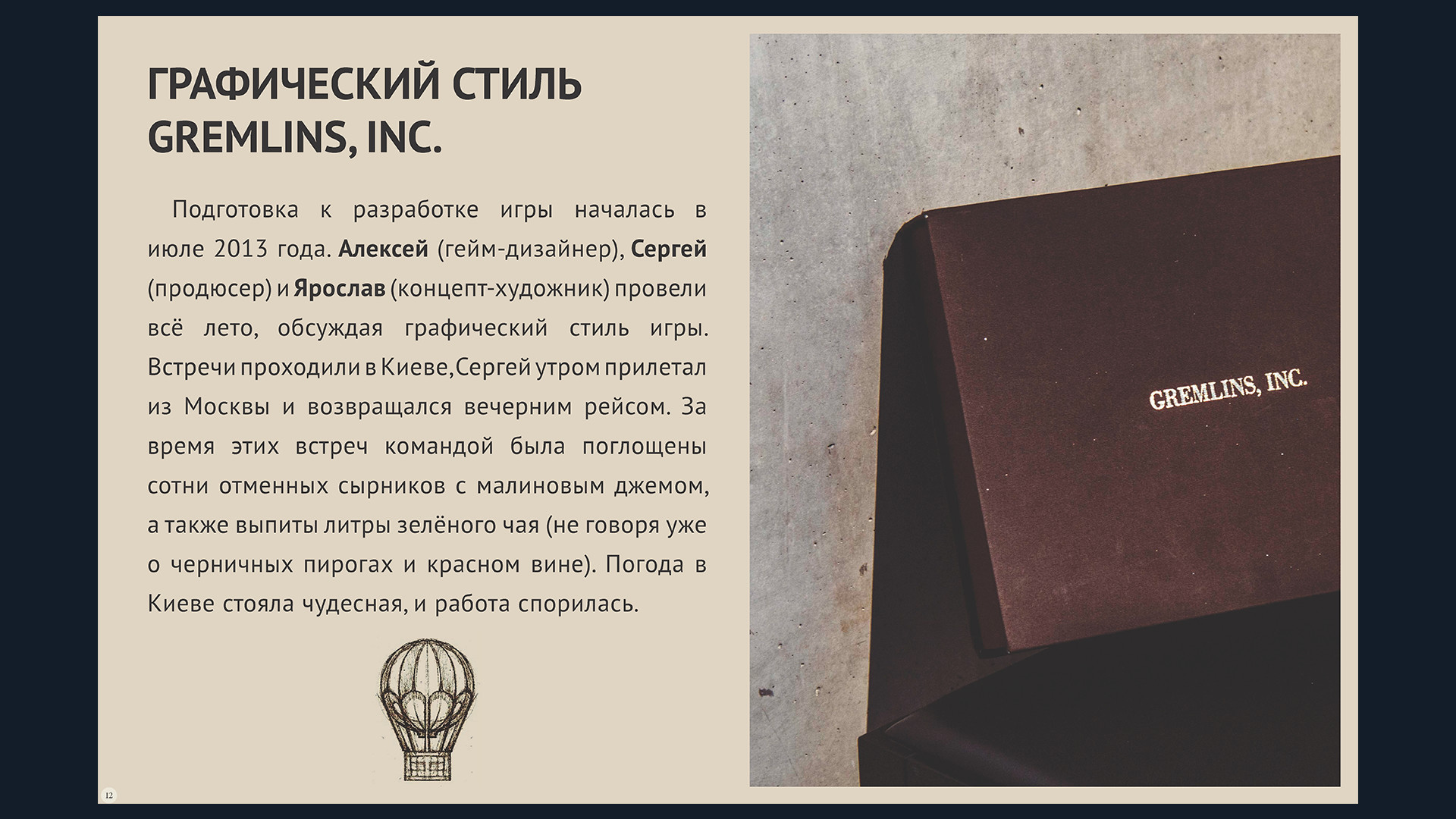 Этот цифровой артбук рассказывает историю создания проекта Gremlins, Inc. и содержит более ста эскизов, фотографий и скриншотов, сделанных на самых разных этапах работы над игрой.СОДЕРЖАНИЕ: 1. ПРЕДЫСТОРИЯ2. ГРАФИЧЕСКИЙ СТИЛЬ GREMLINS, INC.3. СОЗДАНИЕ ИГРОВОГО ПОЛЯ4. ГЛАВНЫЕ ТЕМЫ ИГРЫ5. ЭМОЦИИ И АЛЬТЕРНАТИВНЫЕ ПОРТРЕТЫ ПЕРСОНАЖЕЙ6. ЗВУКОВЫЕ ЭФФЕКТЫ И МУЗЫКА7. НАСТОЛЬНАЯ И КАРТОЧНАЯ ВЕРСИИ ИГРЫ8. ЛОГОТИП GREMLINS, INC.9. НАША КОМАНДА10. ЧТО ДАЛЬШЕ?Размер: 120 страниц. Формат: PDF.Ориентация: ландшафтная (альбомная).В КАЧЕСТВЕ БОНУСА: Особая иконка игрока для лобби и особый задник для профиля игрока (оба элемента – в тематике артбука).ГДЕ НАХОДЯТСЯ ФАЙЛЫ: Обратите внимание, что файлы PDF будут помещены в папку, содержащую игру Gremlins, Inc.:..Steam/steamapps/common/Gremlins_Inc/Artbook. Далее