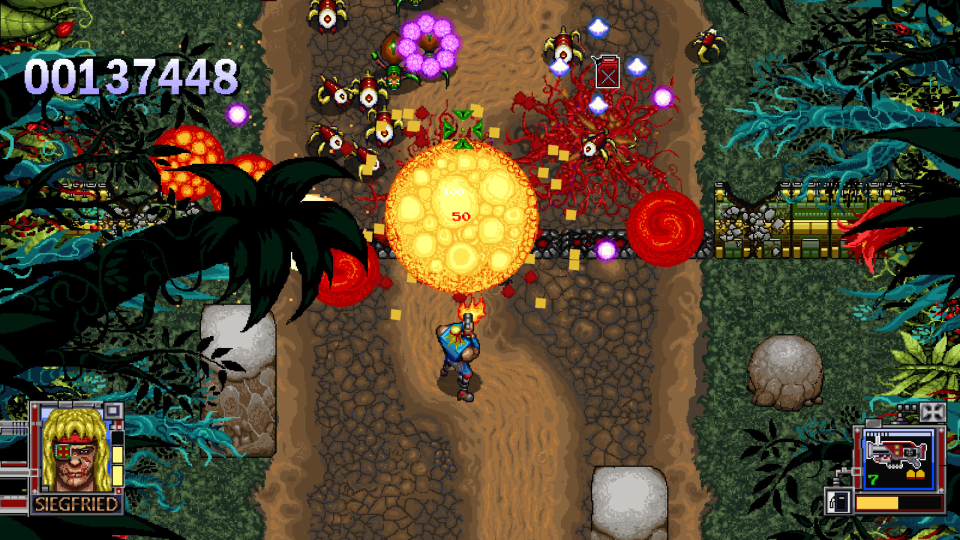 SturmFront – The Mutant War: Übel Edition is a remake of Andrade Games' debut game that aims to enhance every feature imaginable: Doubled content, enhanced gameplay, more graphics and more blood!This is the ultimate version of SturmFront and a love letter to the arcade genre!It is the year 1984 and it is the end of the world as we know it. A great plague, wrought by human hands, devoured all known life and puked forth a new and foreign kind of creature: the mutants. The evils that escaped this Pandora's box, still loyal to the alien genes within their flesh, could not be controlled by humans. Our extinction is upon us!Dr. Hartmuth Griesgram, a heartbroken and eccentric scientist who is responsible for the creation of synthetic humans, activates his accursed human manufactory one last time to unleash his ultimate creation and his final hope: the prototype SturmFront battle unit. A flawless cyborg engineered for war.Ready yourself to assault the enemy!You play as Siegfried von Hammerstein, a unique semi-organic battle unit whose only purpose to exist is to kill and destroy. Purge the mutant with your flamethrower. Use the flamethrower to convert enemy bullets into gems. Find all the hidden souls to uncover the truth about the mutant war and its origin! Slay gigantic enemies! Show them no mercy! A classic arcade game with a touch of bullet hell. Play with mouse and keyboard or with your Xbox controler (Twin Stick).A heavy metal soundtrack reinforces the game's dark and aggressive atmosphere. Erzen Luboja, the game's composer, took inspiration from the Thrash- and Death Metal genres with such bands as Asphyx, Bolt Thrower and Venom being the primary influences on the musical score.This game was made as a love letter to arcade culture. But what does arcade culture stand for in the age of digital distribution?As we see it, it stands for uncompromising action, a fair challenge and an uncensored artistic vision freed from societal norms. Далее