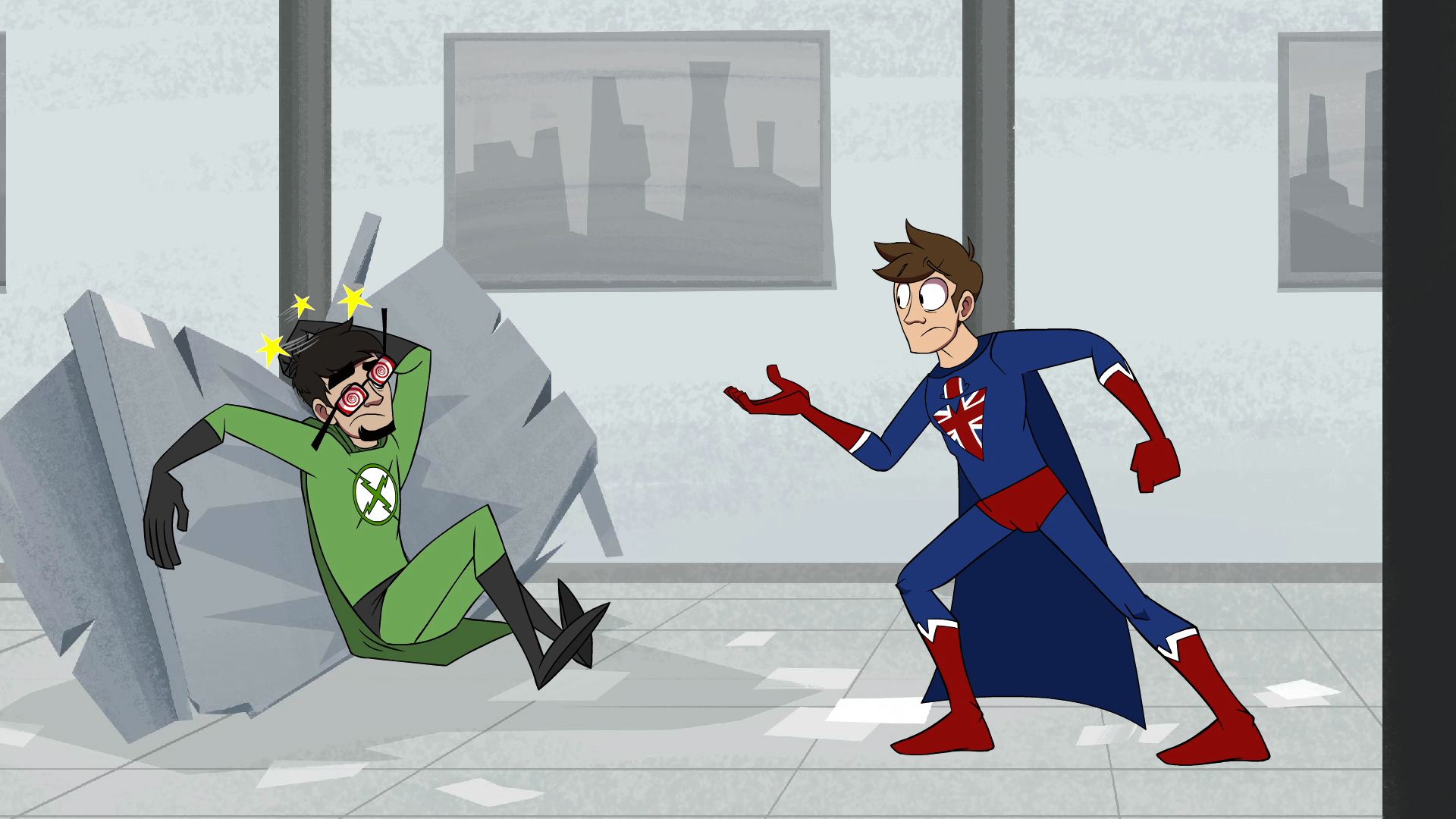 Two best friends who dress up as super heroes, protecting the city from a greedy half-pirate, half-corporate villain and a mad scientist bent on world domination. What could go wrong? X-Ray and Vav want to be the greatest super heroes ever, but they're the last people you'd want to be saved by. Despite their lack of superhero prowess, the duo is ready to take on any thug, robber or villain who stands in the way of justice. And they'll do it in true X-Ray and Vav fashion; crotch touching and creating chaos to save the day (for the most part)! Далее