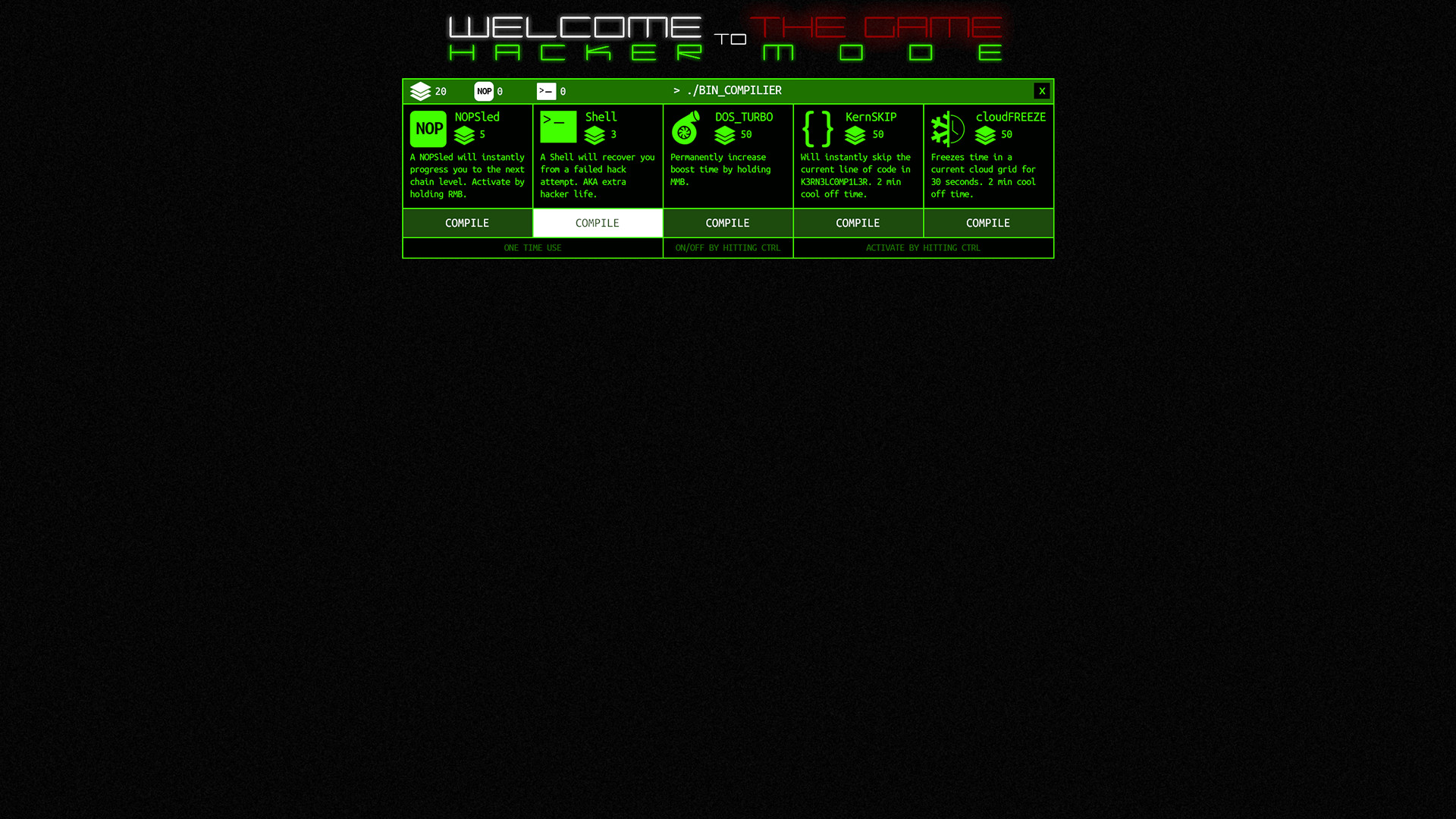 Do you think you have what it takes to become a 1337 hacker? Welcome to the Game - Hacker Mode is a DLC for Welcome to the Game that is a non-stop chain puzzle mode. Solve your favorite attacks from the DOSBlocker, K3RN3LC0MP1L3R and new CLOUDGRID. Each chain mode has levels of chains, as you progress further the puzzles get more difficult. Solve them to get points!Build up points to compile stacks, use those stacks unlock upgrades! Upgrades include: - NOPSled: Will instantly progress you to the next chain level. - Shell: Will recover you from a failed hack attempt, AKA extra hacker life! - DOS_TURBO: Permanently increase boost time! - KernSKIP: Will instantly skip the current line of code in the K3RN3LC0MP1L3R. - cloudFREEZE: Freezes time in a current cloud grid for 30 seconds.Think you can build up a high enough score top become one of the top 1337? Get Welcome to the Game - Hacker Mode and let the hacking games begin! Далее