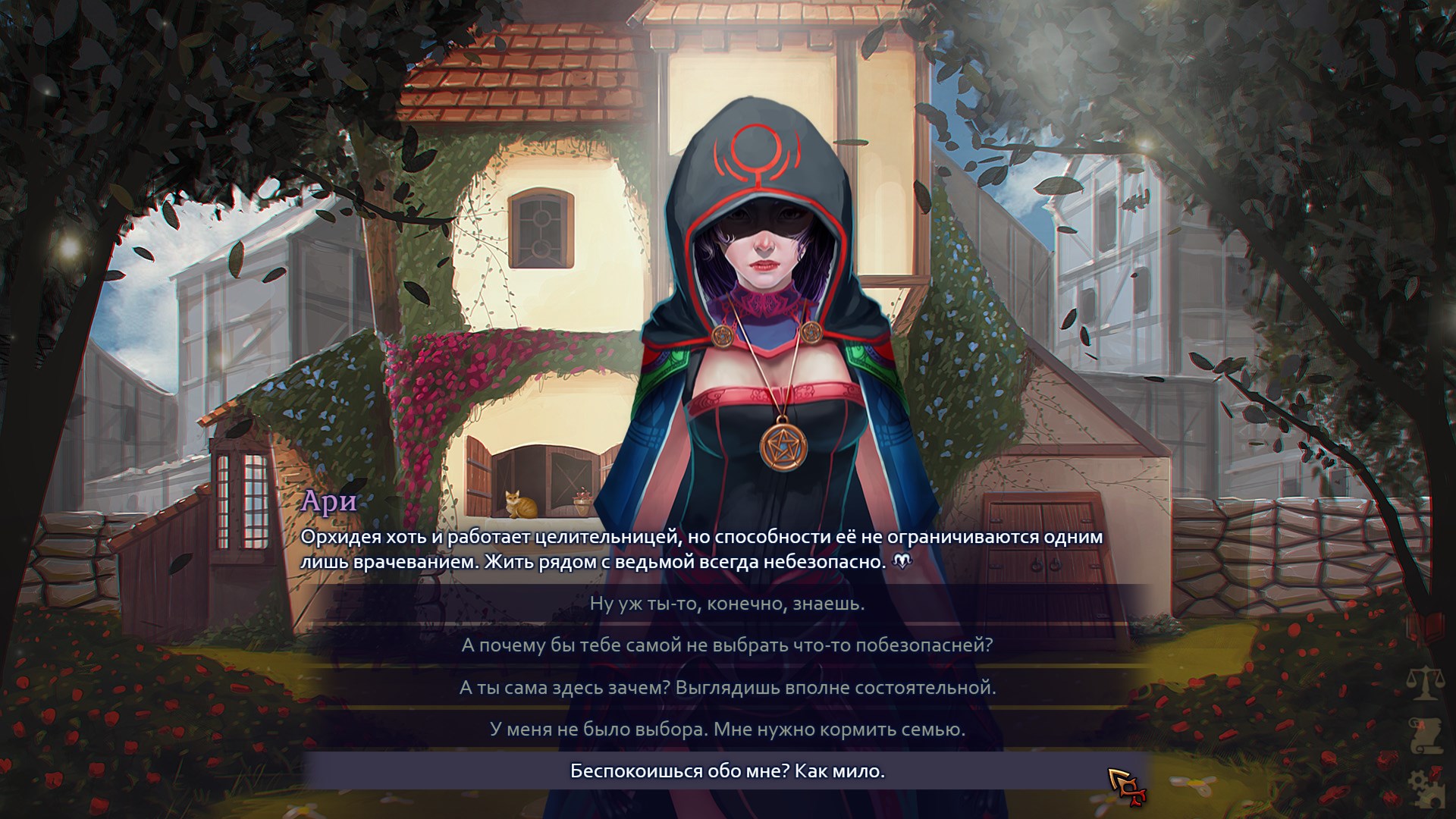 Женский персонаж. Огромное количество выборов, позволяющее полностью погрузиться в повествование. Дружба, романы, а также непростые отношения любви-ненависти. Индивидуальная система мировоззрения, зависящая от двух параметров: Добрая/Злая и Тактичная/Дерзкая. Журнал, который постепенно заполняется историей и знаниями о мире. Интриги и предательства. Демон, говорящий у вас в голове. Частичная озвучка.В небольшом мирном городке живёт девушка по имени Брайт. Для её семьи настали тяжёлые времена, но, к счастью, на неё обратила внимание известная ведьма-целительница Орхидея. Однако у великодушной, спокойной и всеми обожаемой Орхидеи есть свои тёмные тайны, которые потихоньку начинает открывать Брайт.Девушка оказывается втянута в мрачный мир заговоров и предательств. Кажется, ей уже никогда не дадут побыть в одиночестве — ведь её действиями заинтересовалось сильное демоническое существо, голос которого вторгается в её мысли в самые неподходящие моменты.В перевернувшейся с ног на голову жизни Брайт появляются и другие значимые личности… Юная ученица ведьмы, Ари, попавшая под дурное влияние. Она старается быть дружелюбной, хотя понимает, что они с Брайт — враги… или всё-таки не враги? А также сэр Браш — зловещий рыцарь с дурной репутацией, в котором проснулись нежные чувства к Брайт. Хотя его манера выражать эти самые чувства крайне специфична. Далее