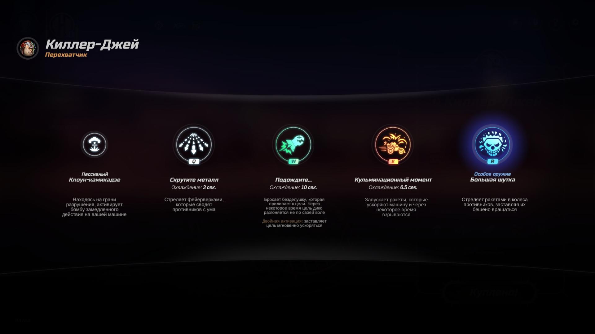Киллер-Джей обожает шутки! Он не только взрывает врагов, но и разыгрывает их, заставляя врезаться в барьеры, лаву и даже друг в друга! С этим набором вы сможете играть за него.. и хвастаться замечательным образом Рок-Звезды для его машины.При покупке этого набора вы получите бессрочный доступ к Киллер-Джею, а также одну (1) серебряную текстуру для его машины. Персонаж и текстура доступны в игровом магазине и по отдельности, но этот набор позволит вам сэкономить примерно 30%. Чтобы узнать, кто такой Киллер-Джей, посетите его веб-сайт.Подведем итоги. В этот набор входят:Киллер-ДжейОбраз Рок-Звезды Далее
