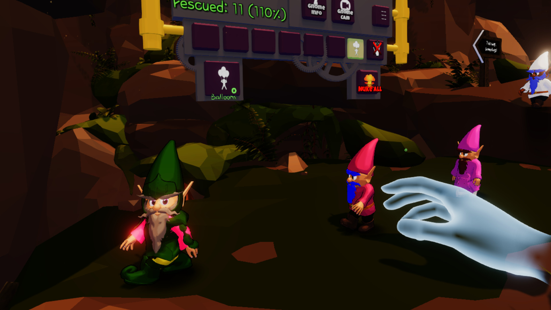 In the land of Ventocia, the Gnomelings are on the move, but danger awaits them at every turn! Lava pits, death-traps, abyss-falls, and flying spears all stand between the Gnomelings and their new homeland. It's up to you and your VR controllers to make sure they arrive safely at their destination. Teach your Gnomelings to parachute, direct traffic, and generally help them avoid certain death. Use your hands for dozens of levels of crowd controlling puzzle action!