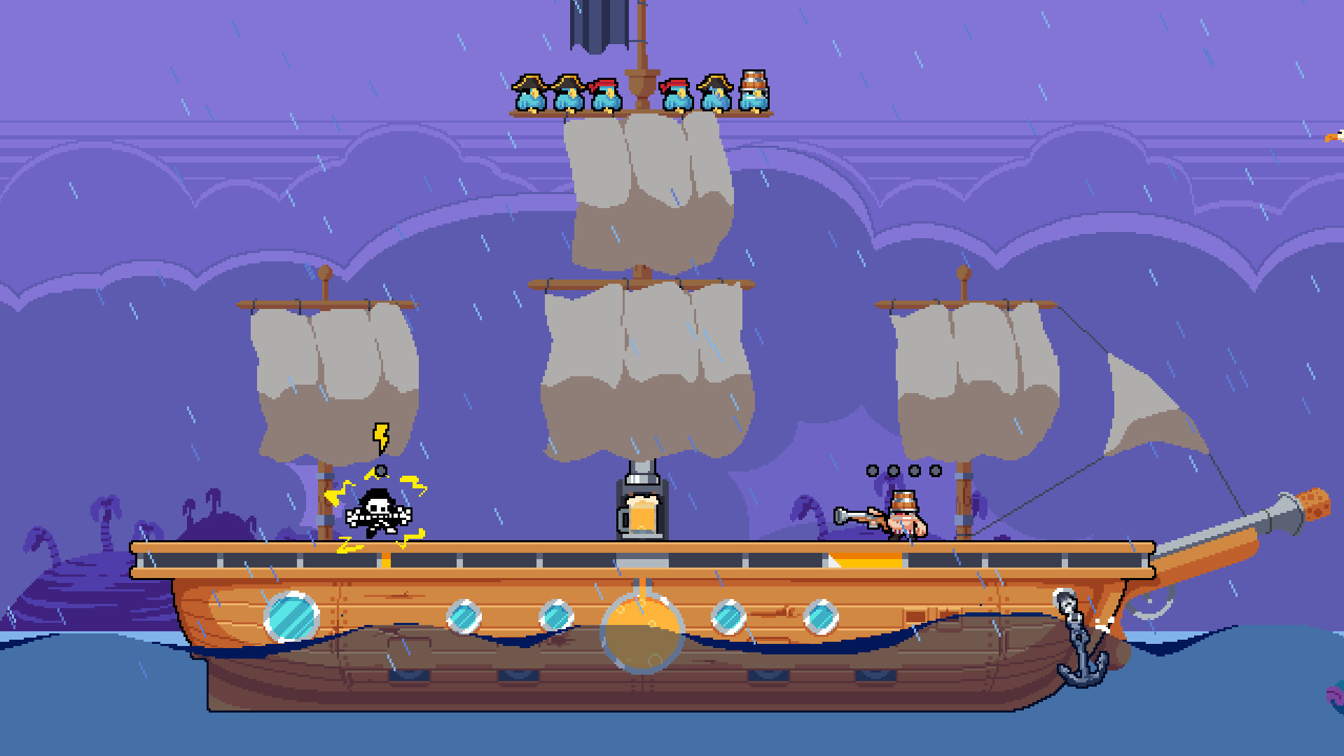 ЭЙ, НА ПАЛУБЕ!. Duel on Board - это игра 1 на 1 с локальным мультиплеером, для соревнований и вечеринок, в которой пираты сражаются за драгоценное пиво во время плавания в опасном открытом море. Как и в старых добрых играх, вы можете играть с другом на одной клавиатуре!Правила дуэли следующие:Доберись до центра корабля, где расположено пиво.Не будь сброшен с корабля.ИГРАЙТЕ ОНЛАЙН С ДРУГОМ ИСПОЛЬЗУЯ REMOTE PLAY. С новейшей функцией Steam Remote Play стало как никогда проще сыграть с другом в игру с локальным мультиплеером. С этой новой функцией больше не нужно выходить из дома, чтобы сыграть вместе! Только у одного из вас должна быть игра!КАК В СТАРЫХ ДОБРЫХ ИГРАХ!. Два игрока могут одновременно играть на одной клавиатуре, поэтому не нужны дополнительные контроллеры!У тебя клавиатура AZERTY? Или сломанная кнопка?Без проблем! Всегда будет возможность переназначить кнопки в настройках.БУДЬ ОСТОРОЖЕН!. Во время плавания в опасном открытом море ты попадёшь в различные локации с событиями, которые изменят механику и правила игры. Гроза: Впереди сильный шторм! Громы поразят корабль, нужно быстро реагировать, чтобы тебя не задела ударная волна. Призрачные моря: Проникни в жуткое измерение! Кладбище кораблей станет местом для эпичных поединков на мечах между игроками и призрачными пиратами. Нашествие инопланетян: Берегись, они идут! Не позволь инопланетянам похитить тебя во время сражения с другим пиратом. Метель: Ты попадаешь на Южный Полюс и все начинает замерзать! Обязательно уворачивайся от пуль, чтобы не замёрзнуть.ПИРАТЫ СРАЖАЮТСЯ НЕ ТОЛЬКО ЗА ПИВО!. Когда пираты не борются за пиво, они могут наслаждаться различными неформальными активностями. Пенальти: Футбол на пиратском корабле! Пираты по очереди пытаются забить гол и выиграть чемпионат. Бой на мечах: Не стань едой для акул! Используй свою реакцию чтобы прорваться через корабль и сбросить своего противника с доски. Пинг-понг: Прыжки запрещены! Стань мастером пинг-понга, отбивая все шары, летящие в тебя Танец с пушками: Мы под атакой! Помогайте друг другу, чтобы пережить атаку с вражеского корабля. Далее