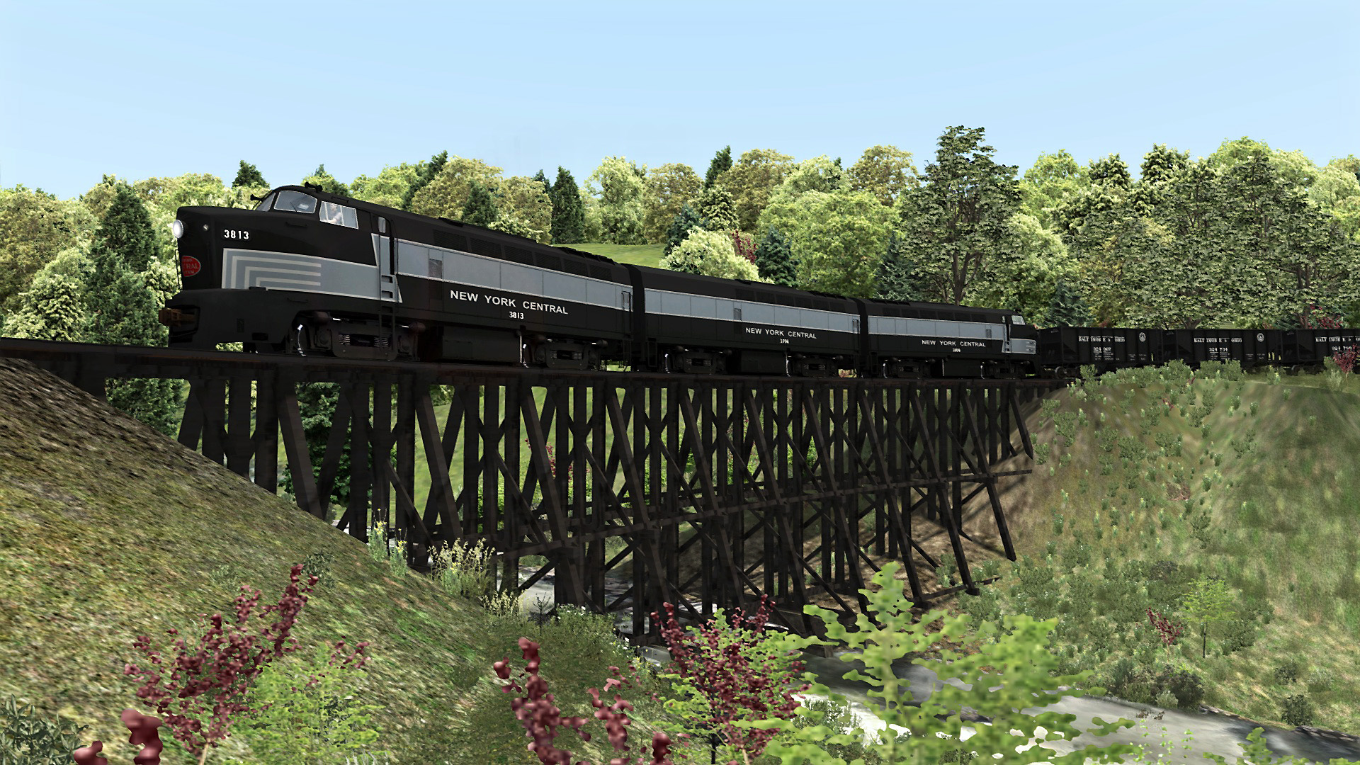 Please Note: The PRR RF-16 “Sharknose” Loco Add-On is required, as a separate purchase, in order to use the content featured in this add-on.Classic American railroading of the 1950s and 1960s comes alive with the iconic Baldwin RF-16 “Sharknose” diesel in two liveries of the iconic New York Central!The New York Central Baldwin RF-16 for Train Simulator is provided in the railroad's stylish “lightning stripe” livery of the 1950s as well as the unique “cigar band” scheme which NYC utilized in the 1960s.In 1950, the Baldwin Locomotive Works introduced an upgraded line of its diesels, which included the 1,600-horsepower RF-16 “Sharknose” freight locomotive. Three of the biggest railroads in the eastern United States purchased a total of 160 RF-16s in cab or booster configurations. The Pennsylvania purchased 102 locomotives Baltimore & Ohio 32 units -- and PRR's great rival, the famed New York Central, acquired 26 Sharks (18 cabs, 8 boosters). The three railroads often employed the RF-16s in heavy coal or ore services, although New York Central's RF-16s were also regulars working in the upper Midwest on NYC's “Big Four” lines. All three eastern roads retired their RF16s in the mid-1960s, but when it came to the New York Central Sharks, there emerged a fascinating postscript. In 1967, the coal-hauling Monongahela Railway (original operator of Train Simulator's Norfolk Southern Coal District route) purchased nine ex-NYC Sharks and operated several of the venerable Baldwins into the early 1970s. Created by DTM, the Train Simulator RF-16 is a superb reproduction of the iconic Sharknose diesel, featuring an authentic cab and the unique sounds of Baldwin's slow-churning 608A diesel power plant.Key Features. Baldwin RF-16 “Sharknose” diesel in New York Central “lightning stripe” and “cigar band” liveriesCab and booster locomotivesAuthentic Baldwin soundsInteractive and realistic cab and controls Далее