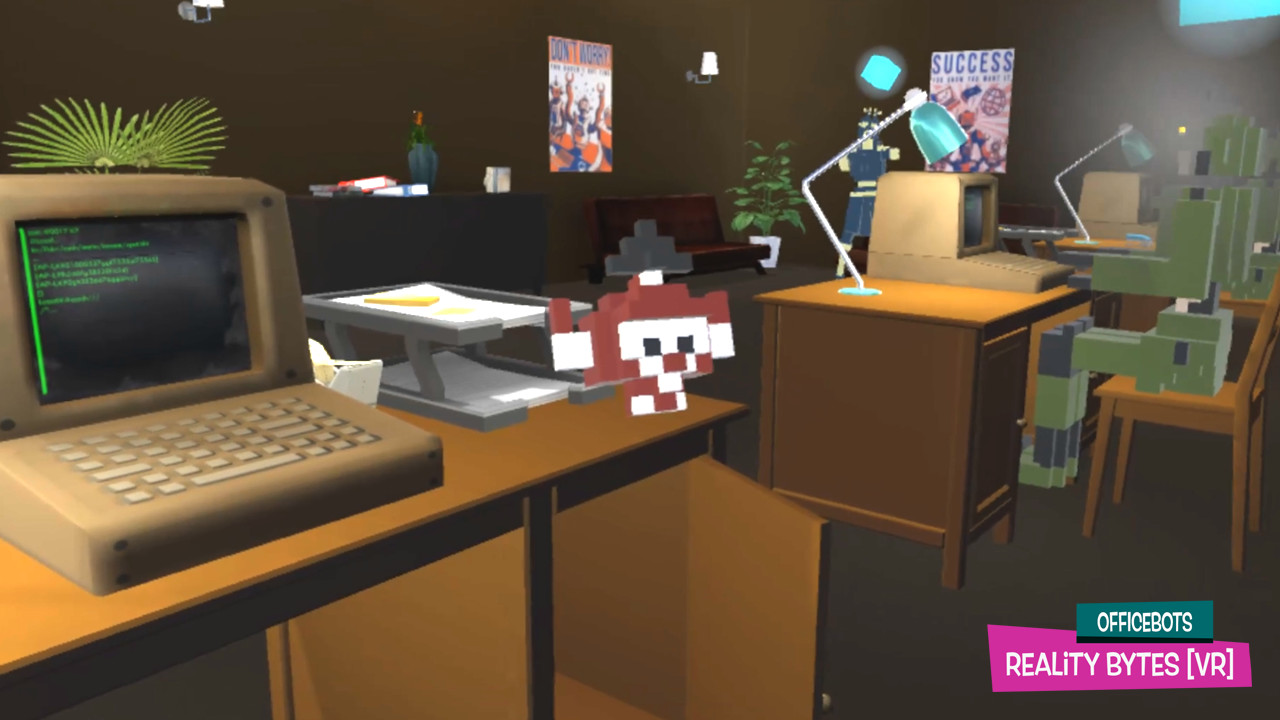 You know the program: get a job, work, retire, then die. But what if you could short circuit the employment machine, interrupt the process, and escape?You're the new hire at a dreary office, recruited after your predecessor lost his head (literally). You're expected to keep quiet, do your work, and be just another cog in a big machine, but instead you start chatting with your new colleagues. Each of them is a robot like you, disappointed by life and despairing of ever achieving their goals, resigned to spending the rest of their days stuck at a desk and staring at a screen.However, if you can get to know your co-workers, learning about their dreams and their secret loves, you might be able to help them. In the course of bringing a little bit of happiness to a group of depressed robots, you may even discover a way to escape this dead end job and find a little happiness of your own.OfficeBots: Reality Bytes is a little game with a big heart. Explore a wonderfully weird corporate office, listen to your robotic co-workers' stories, and help to solve their problems. Ultimately your goal is to find a way to escape, but your journey to freedom will give you many opportunities to brighten up the lives of others. A byte-sized VR adventure that can either be completed in one sitting or explored at length. Optional quests and multiple solutions give you different paths to freedom. Explore a charmingly odd virtual office and discover everybody's hidden secrets. Colourfully chunky robotic visuals paired with an emotionally resonant story. A big collection of Steam achievements to reward exploration and experimentation. VR exclusive title for HTC Vive and Oculus Rift designed to minimise motion sickness. If all else fails, you can find some catharsis in just trashing the place.OfficeBots: Reality Bytes was initially designed and programmed by an independent solo developer. Thanks to a marketing and release grant from Film Victoria, it has now being revised, enhanced, and expanded by the original creator with the help of a small team. By purchasing this, you are investing in the future of independent games. Далее