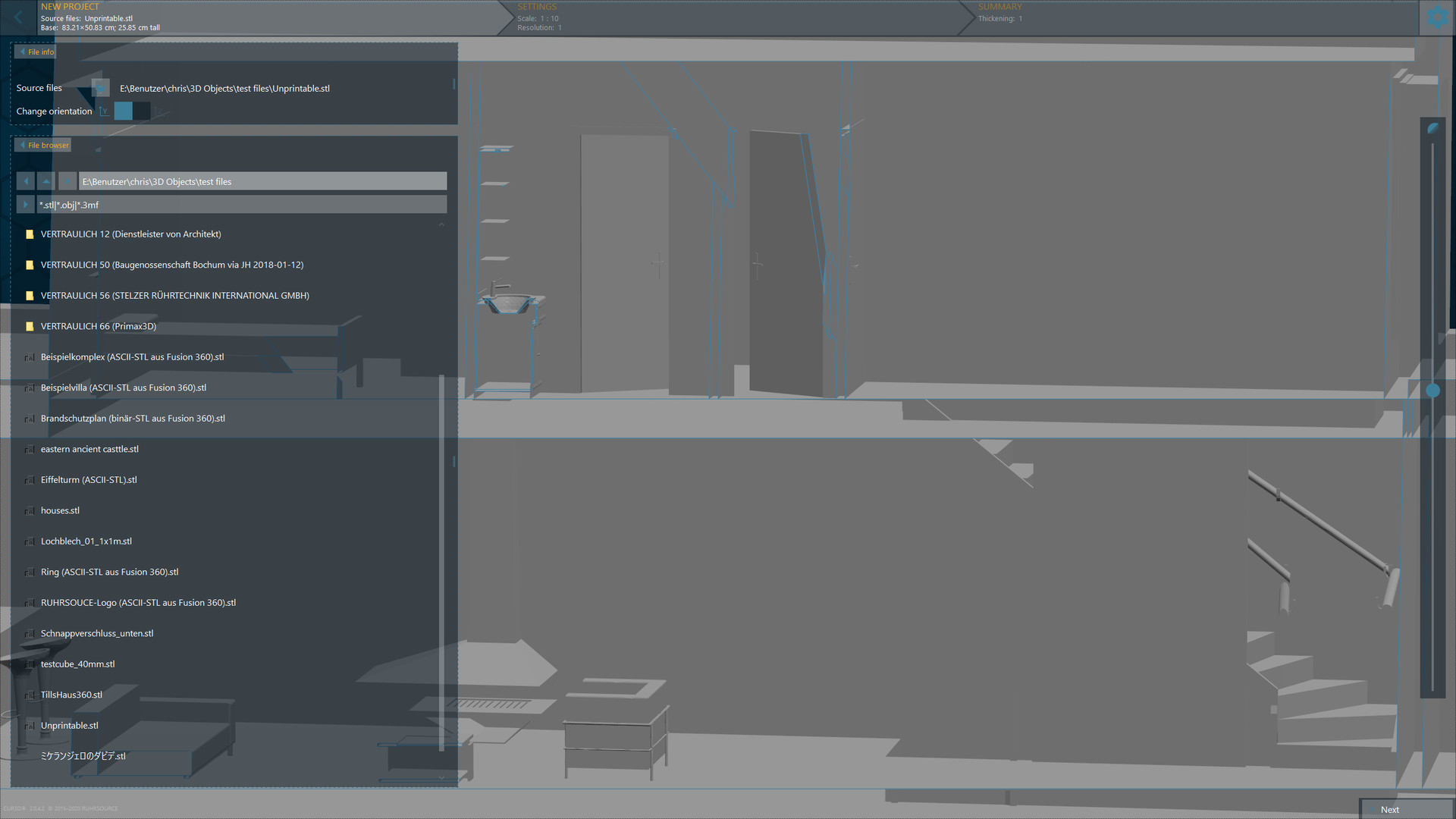 CUR3D Maker Edition (with Steam) is dead; long live the CUR3D Steam Edition!. What's new?. Actually everything. No stone is upside down anymore. Steam Edition and Professional Edition are now state of the art. For the CUR3D Steam Edition there will be updates in the same rhythm as for the CUR3D Maker Edition (without Steam) and CUR3D Professional.When is the CUR3D Steam Edition the right choice?. If you have faulty 3D data that should be 3D printedIf you want to quickly convert 1: 1 large 3D CAD data into 3D printable modelsIf you do illustrative model makingIf you want to 3D print architectural modelsIf Autodesk netfabb, Materialize Magics and other tools are too complicated and time consuming or cannot repair a 3D modelIf you don't want to spend money on 3D data repairs at 3D printing service providers.. and and and..3D printing as easy as printing on a white piece of paper. CUR3D, the first real 3D printing prepress, will revolutionize your workflow with 3D printers. No matter what type of vision models you want to print, CUR3D will revolutionize, accelerate and simplify your work with 3D printers. Now you can concentrate on the essentials and CUR3D does the rest. Thus a high level of productivity, quality gain, cost and time savings is achieved. „Now it's printable, because it's CUR3D!“The first real 3D printing prepress. Most CAD data are not printable out of the box. Usually several hours of preparation of the drawings are necessary: thin walls and overlapping surfaces must be corrected, as well as wrong normals. The filling of cavities and holes takes much time, too. And if the scaling factor also deviates from the original data, frustration is pre-programmed. RUHRSOURCE CUR3D (spoken: cured) reduces the amount of work from many hours to a few minutes. The Gutenberg-revolution for additive manufacturing: No matter what type of vision models you want to print, CUR3D will revolutionize your work with 3D printers and, above all, speed up the process. Now you can concentrate on the essentials and CUR3D does the rest.Some before-and-after examples. Generative StructureSynth design:Technical 3D model of an extruder:Model of a brick car with interior:Medical scan of a urinary tract:Data Input – Magic Box – Data Output. CUR3D scales 3D models without loss, thickens surfaces to a printable minimum, corrects overlapping surfaces as well as improper normals and closes gaps.CUR3D operates completely automatic, fast and absolutely secure. You determine a file to be made printable, set the appropriate dimensions and a desired resolution, CUR3D does the rest, and you can take care of other things.And the best: CUR3D runs perfectly local on your computer system. There is no cloud; None of your data end up in foreign hands, but stay with you!CUR3D is the first real 3D printing prepress, making it the first software on the market to prepare every model for 3D printing.CUR3D supports every 3d printing process and 3d printer.FAQ: What are the CUR3D Maker Edition features?. Quite simply: everything the maker's heart desires.3D printing data preparation by measure in different quality levels for all printing processesQuickly process the data in secondsEasy to use and almost no learning processImport of STL, OBJ and 3MF filesExport in STL formatIs it a subscription model or do I have to pay for CUR3D Steam Edition only once?. It is a one time payment. For the CUR3D Steam Edition (for private individuals) there will be no subscription!Can I use the CUR3D Steam Edition commercially?. No. But there is a DLC that grants the buyer the rights to use the CUR3D Steam Edition commercially.Can I open project files from the professional version in CUR3D Steam Edition?. No. Далее