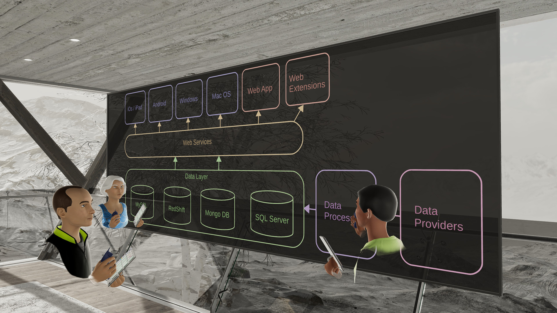 CollabHub is your ideal creative workspace where you can draw diagrams, upload images and share ideas in VR. Enjoy your surroundings in either the summer or winter environments while collaborating with a team or expressing yourself on your own.Real-time collaborative whiteboard: Draw diagrams on a virtual whiteboard with a team of up to 12 or have it all for yourself. Customize the color, size and material of your board and move it around the environment.Advanced Diagrams: Create diagrams such as flow charts, mind maps, business process diagrams, or use freehand drawing as you would on a whiteboard. Make use of a full color palette and more than 30 tools and shapes to choose from.Superior Clarity: All shapes are modelled in 3D with no pixellation or texture artifacts. Your drawings and diagrams look sharp from afar or right up close and whether you use a large or small canvas. Personalize your avatar: Expressive avatars that include customizable skin tone and hair color, with more than 350 variations. High quality voice chat and avatar lip sync give a real sense of presence.Import and Export: Import images to your board and move / resize them anywhere you like. Export to an image file or scalable vector graphics file (SVG).Tutorial: A 7 step tutorial that guides you through the controls and UI to help get you started Далее