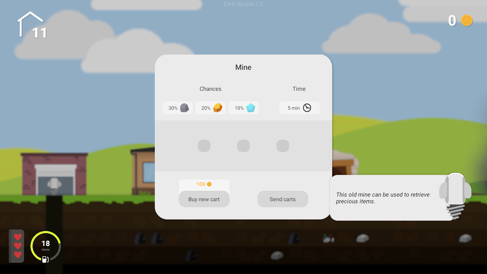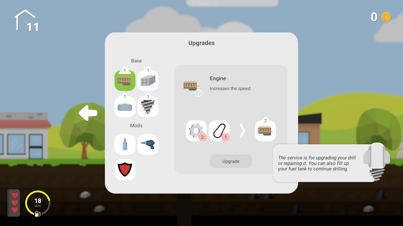 Drill, craft, upgrade and explore in MIneDrill Redux!After a disastrous rocket crash, drill down the earth to find ores that will help you rebuild your rocket and fly back home.Features: 12 types of ores to mineCrafting systemRandomly generated worldsDrill upgrades based on itemsEnemiesTreasures and cavesComing Soon: Full controller supportImproved graphics and soundsMore enemies and a better combat systemSteam achievementsA nice story
