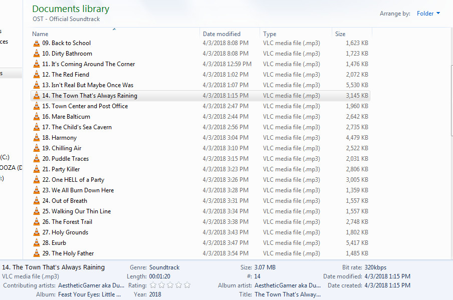 The official soundtrack for 'Feast Your Eyes: Little Marshmallow'. Once purchased, the soundtrack will be located within the main game's installation folder (that you may easily locate by right clicking the game in your Steam Library, choosing 'Properties', going to the 'Local Files' tab, and then selecting 'Browse Local Files'. It'll be among the game's files, in a folder labelled 'Official Soundtrack & Art Collection').The soundtrack comes in 320kbps.MP3 format, all properly labelled for easy organization. There is around 80 minutes worth of music between 45 songs, including extensions of songs found in the main game.The art includes in-game art, concept sketches, WIPs before the final art, & other little goodies of the development process.The Art and Soundtrack will be updated every time a new Act is released.Spoilers below;Act 1 Tracklist: 01. A Need For Title (0:48)02. Gymnopedie (Feast Your Eyes Version) (1:59)03. evaW (0:59)04. Reception (0:57)05. Noiseless Signal (1:07)06. Host's House (2:10)07. Backstage (1:06)08. Terror Keeps On Marching (1:53)09. A Place to Rest (1:15)10. Screamarooni Scoopatoodie (0:44)11. Waters Reflection (1:26)12. Her Melody (2:19)13. Strange Sheet (1:23)14. Held Accountable (1:01)15. Downfall (1:13)16. A Story I Know, But Not My Own (2:18) Далее
